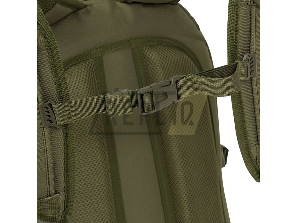 Záda batohu jsou bohatě polstrována pomocí 3D síťoviny jejíž tvar zachovává středový kanálek zlepšující odvětrávání. Nosné popruhy jsou nastavitelné, polstrované, disponují stabilizačními popruhy, plastovými triangly a výškově nastavitelným elastickým hrudním popruhem, který je spínán plastovou přezkou. Na bocích batohu naleznete dvě řady redukované MOLLE/PALS vazby, kompresní popruhy spínané plastovou přezkou a elastické kapsy. Přední část batohu je opatřena dvěma pruhy MOLLE/PALS vazby, prostornou středovou přihrádkou, vrchní kapsou a dvěma VELCRO panely.