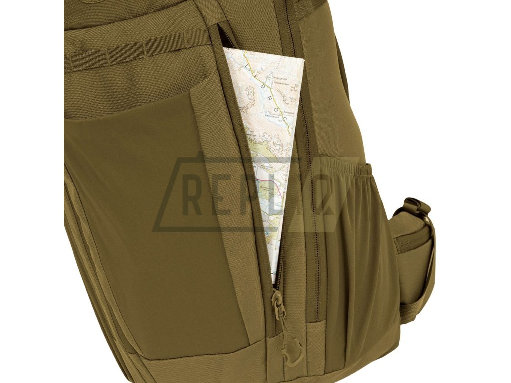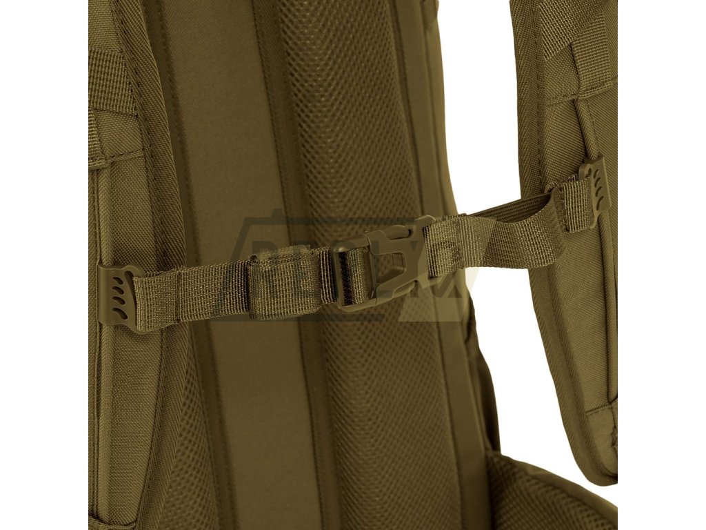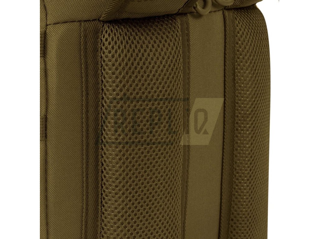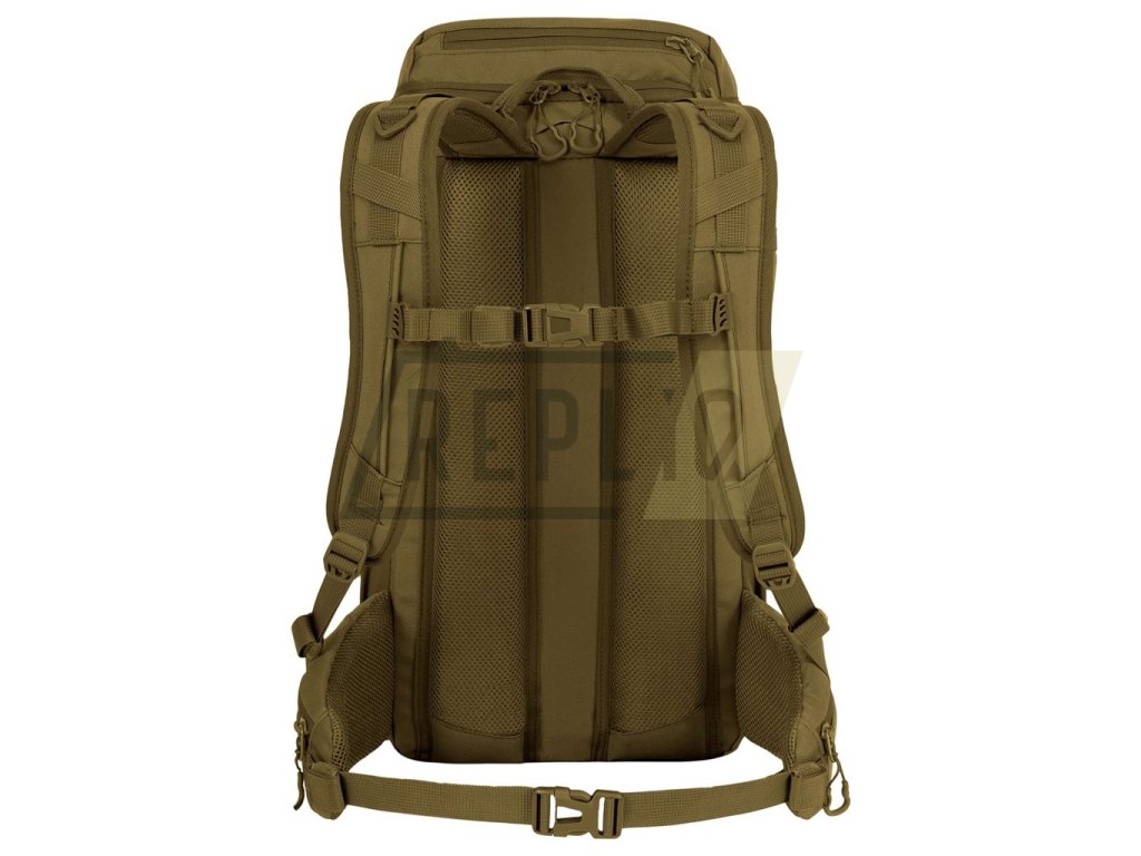 Záda batohu jsou bohatě polstrována pomocí 3D síťoviny jejíž tvar zachovává středový kanálek zlepšující odvětrávání. V horní části zad naleznete klasické látkové madlo na přenášení. Nosné popruhy jsou plně nastavitelné, polstrované, disponují stabilizačními popruhy, plastovými triangly, průvleky na protažení hadičky hydratačního vaku a výškově nastavitelným elastickým hrudním popruhem, který je spínán plastovou přezkou. Bederák batohu je částečně polstrovaný, spínaný plastovou přezkou a na obou stranách disponuje menšími kapsami uzavíranými zipem. Na bocích batohu naleznete tři řady redukované MOLLE/PALS vazby a elastické kapsy. Hlavní chlopeň batohu je opatřena pruhem MOLLE/PALS vazby, prostornou středovou přihrádkou, vrchní kapsou a malým VELCRO panelem.