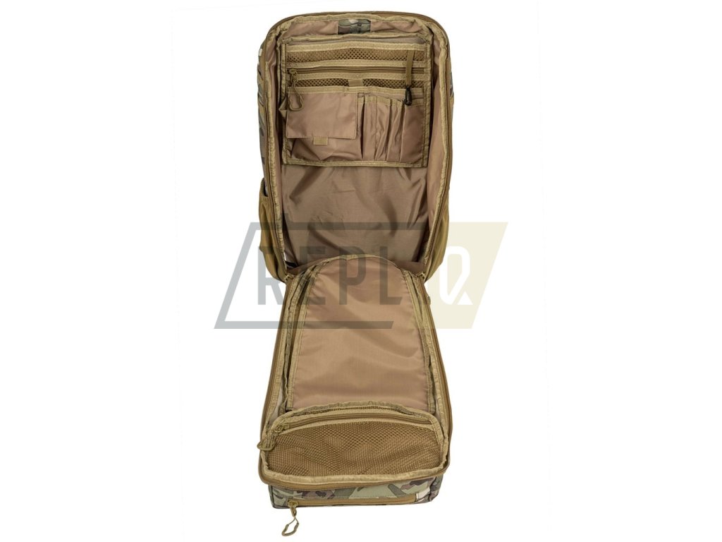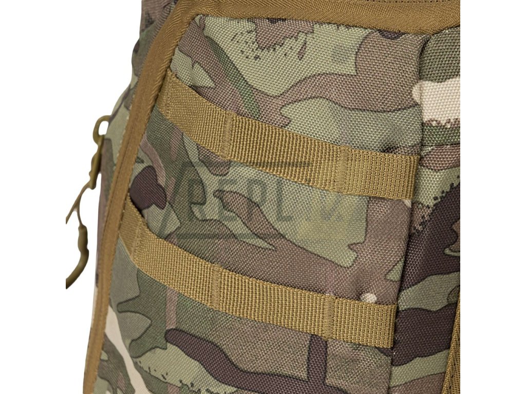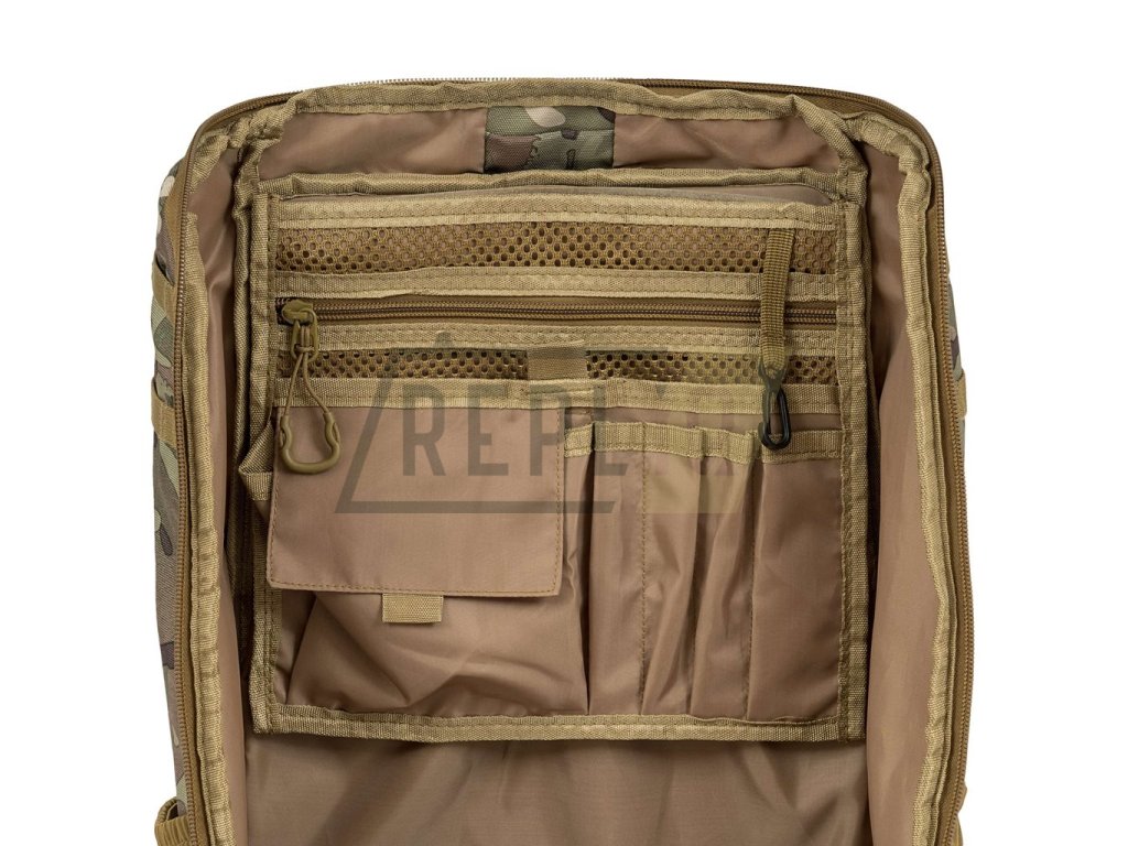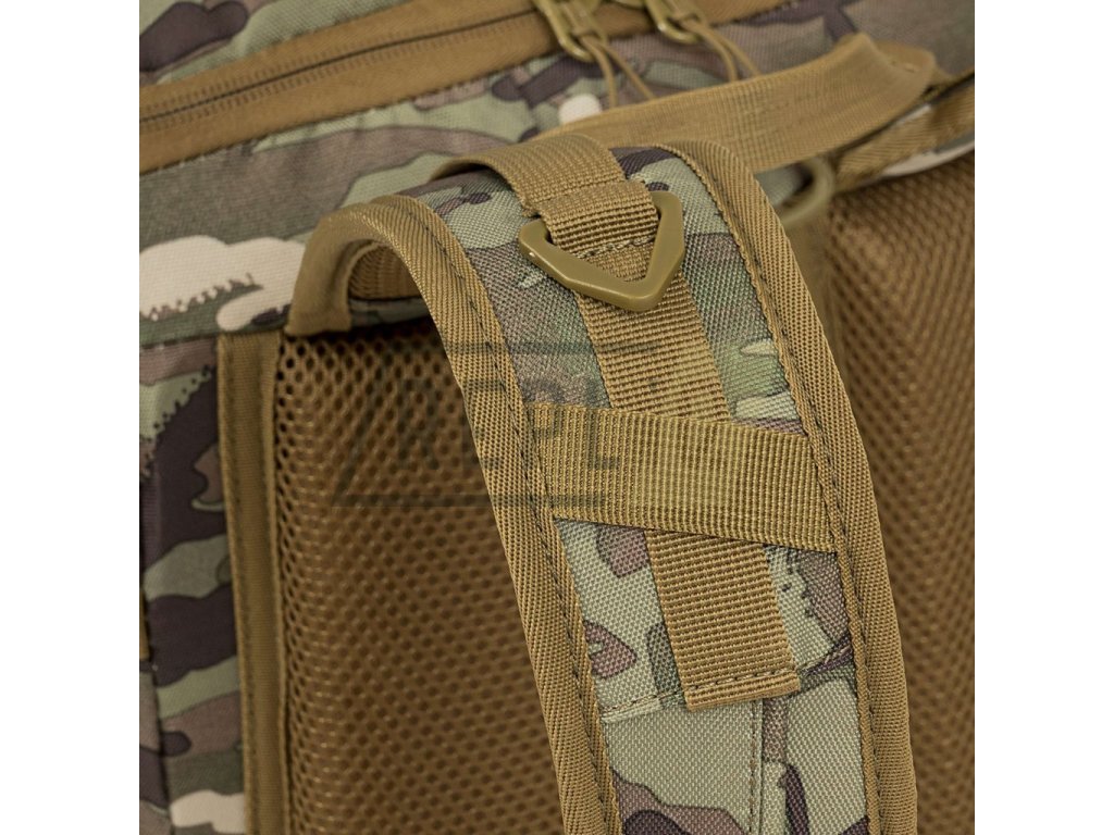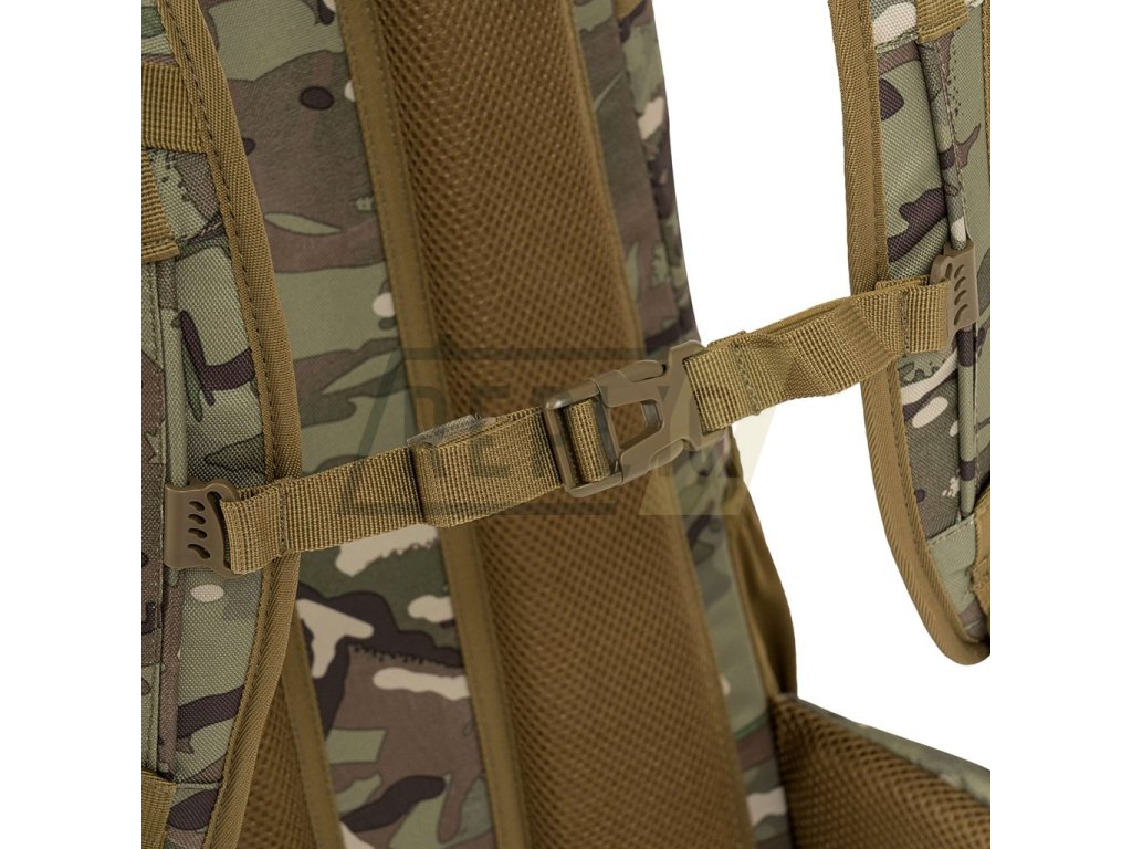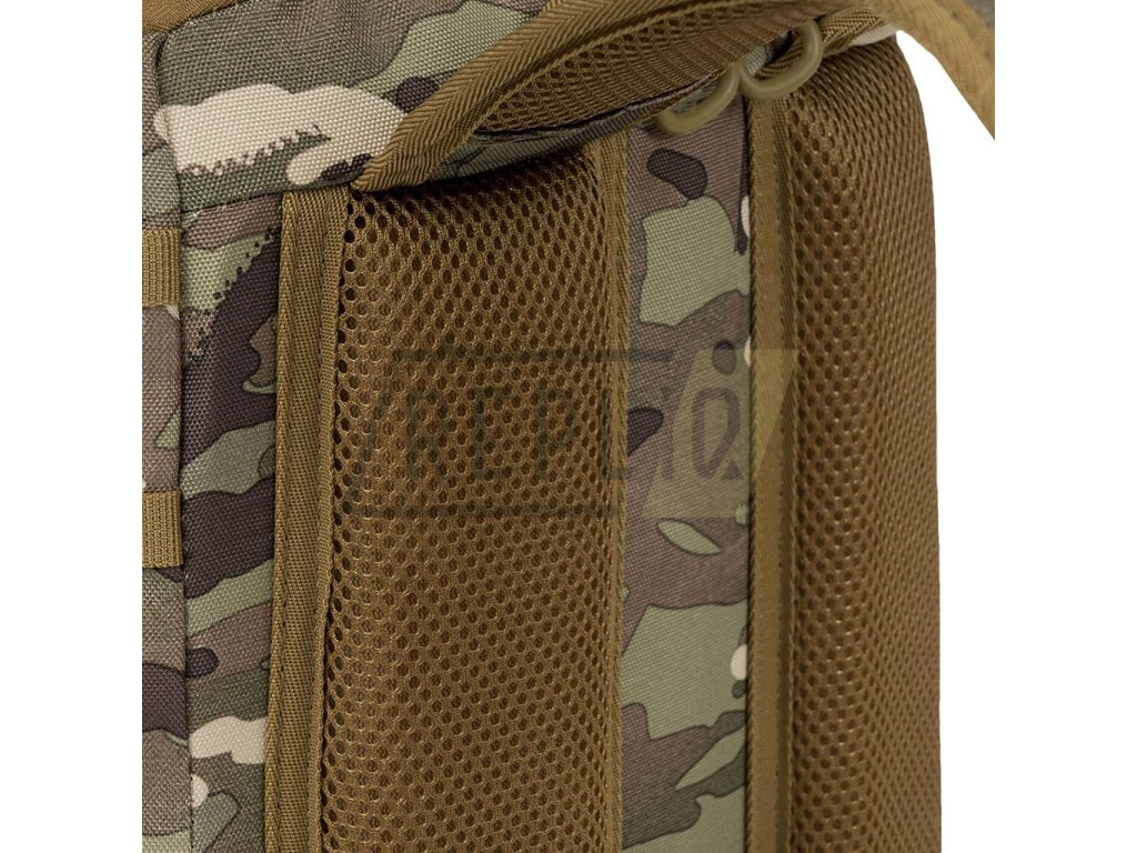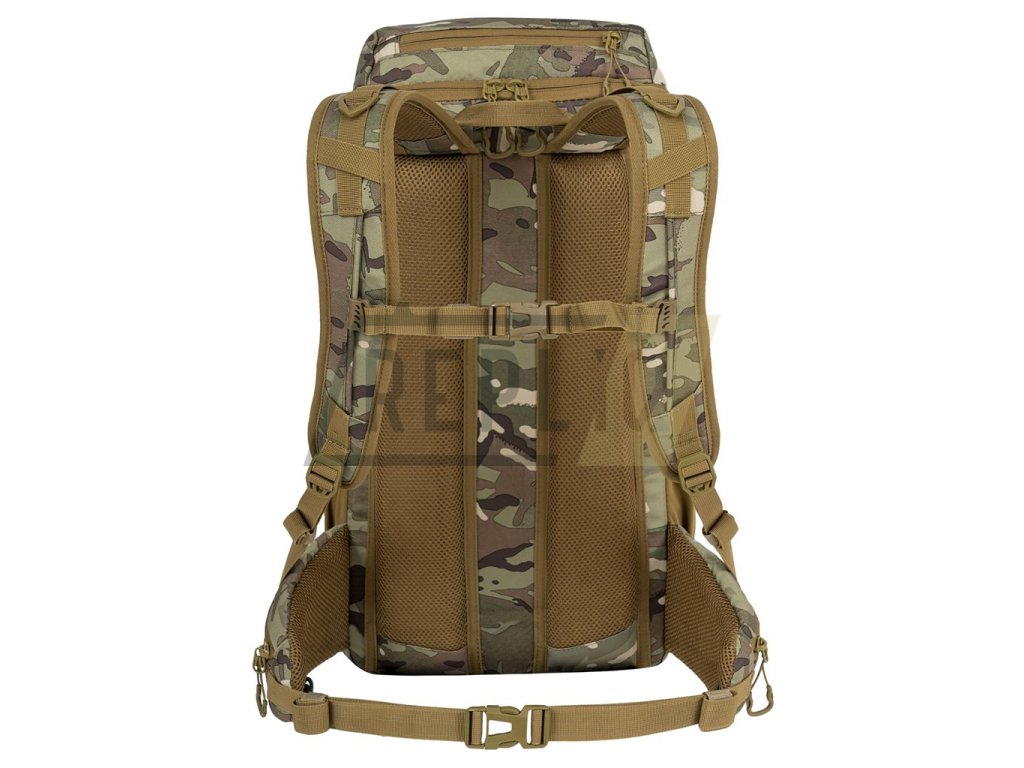 Záda batohu jsou bohatě polstrována pomocí 3D síťoviny jejíž tvar zachovává středový kanálek zlepšující odvětrávání. V horní části zad naleznete klasické látkové madlo na přenášení. Nosné popruhy jsou plně nastavitelné, polstrované, disponují stabilizačními popruhy, plastovými triangly, průvleky na protažení hadičky hydratačního vaku a výškově nastavitelným elastickým hrudním popruhem, který je spínán plastovou přezkou. Bederák batohu je částečně polstrovaný, spínaný plastovou přezkou a na obou stranách disponuje menšími kapsami uzavíranými zipem. Na bocích batohu naleznete tři řady redukované MOLLE/PALS vazby a elastické kapsy. Hlavní chlopeň batohu je opatřena pruhem MOLLE/PALS vazby, prostornou středovou přihrádkou, vrchní kapsou a malým VELCRO panelem.