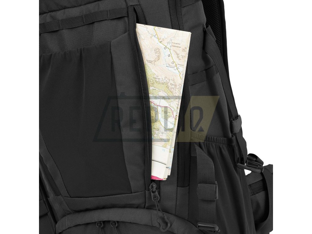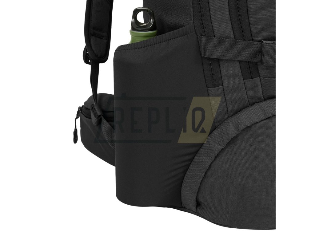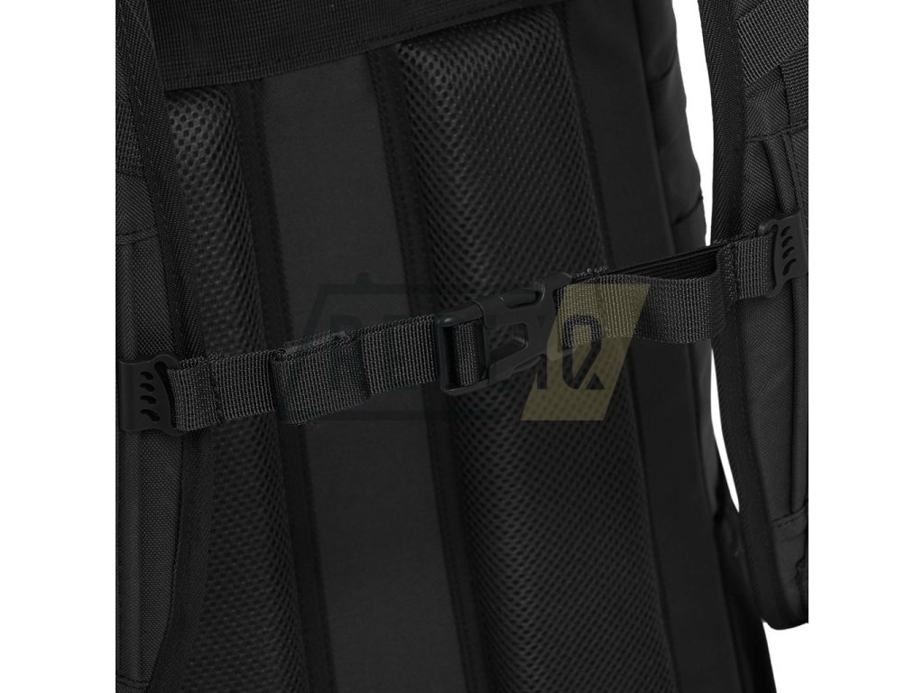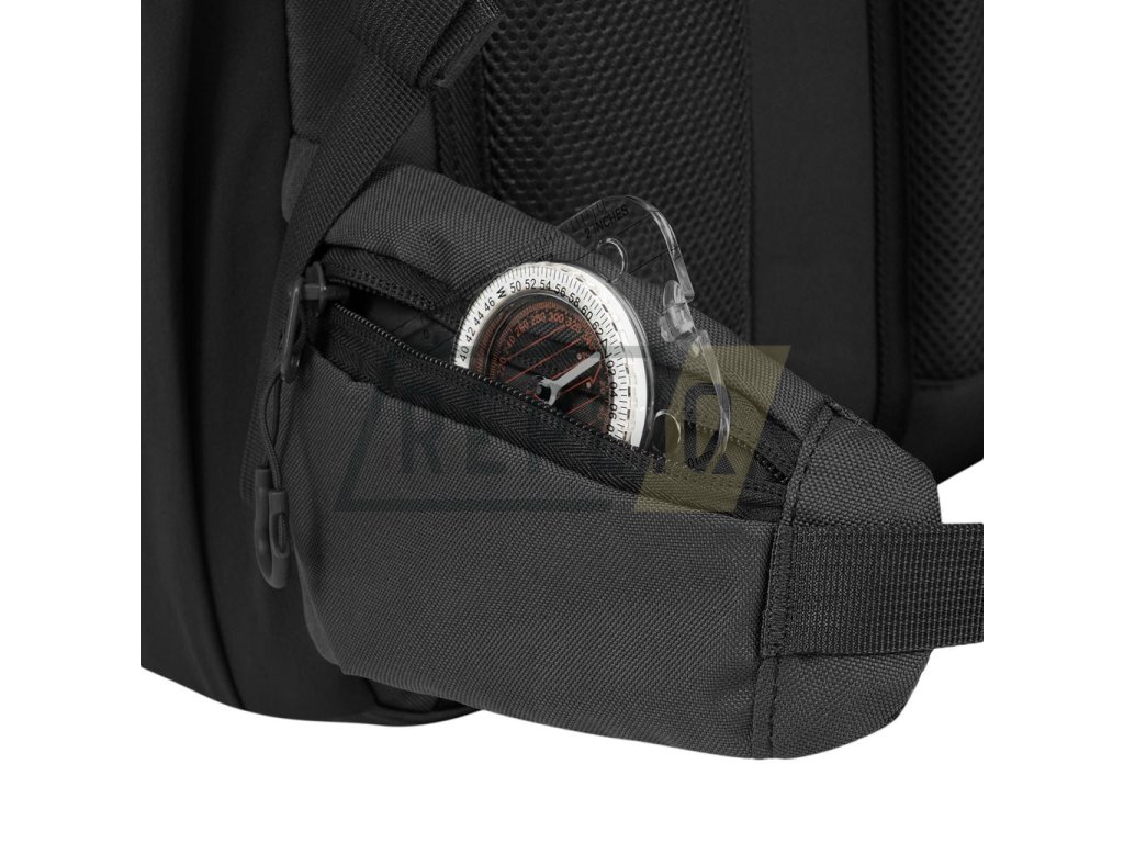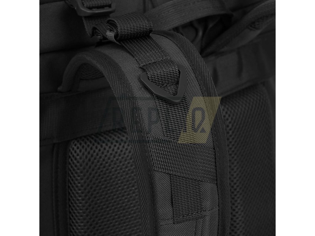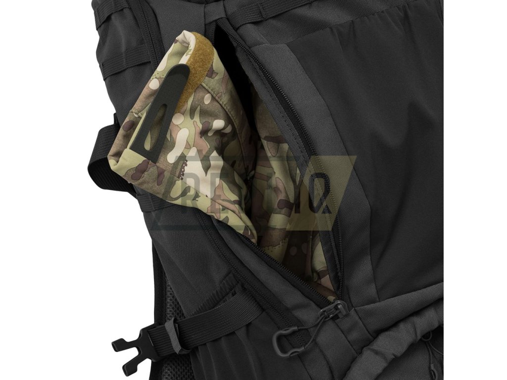 Záda batohu jsou bohatě polstrována pomocí 3D síťoviny jejíž tvar zachovává středový kanálek zlepšující odvětrávání. V horní části zad naleznete klasické látkové madlo na přenášení. Nosné popruhy jsou plně nastavitelné, polstrované, disponují stabilizačními popruhy, plastovými triangly, průvleky na protažení hadičky hydratačního vaku a výškově nastavitelným, elastickým hrudním popruhem, který je spínán plastovou přezkou. Bederák batohu je částečně polstrovaný, spínaný plastovou přezkou a na obou stranách disponuje menšími kapsami uzavíranými zipem. Na bocích batohu naleznete tři řady redukované MOLLE/PALS vazby, elastické kapsy a kompresní popruhy, které jsou spínané pomocí plastových přezek. Hlavní chlopeň batohu je opatřena pruhem MOLLE/PALS vazby, prostornou středovou přihrádkou, vrchní kapsou a malým VELCRO panelem.