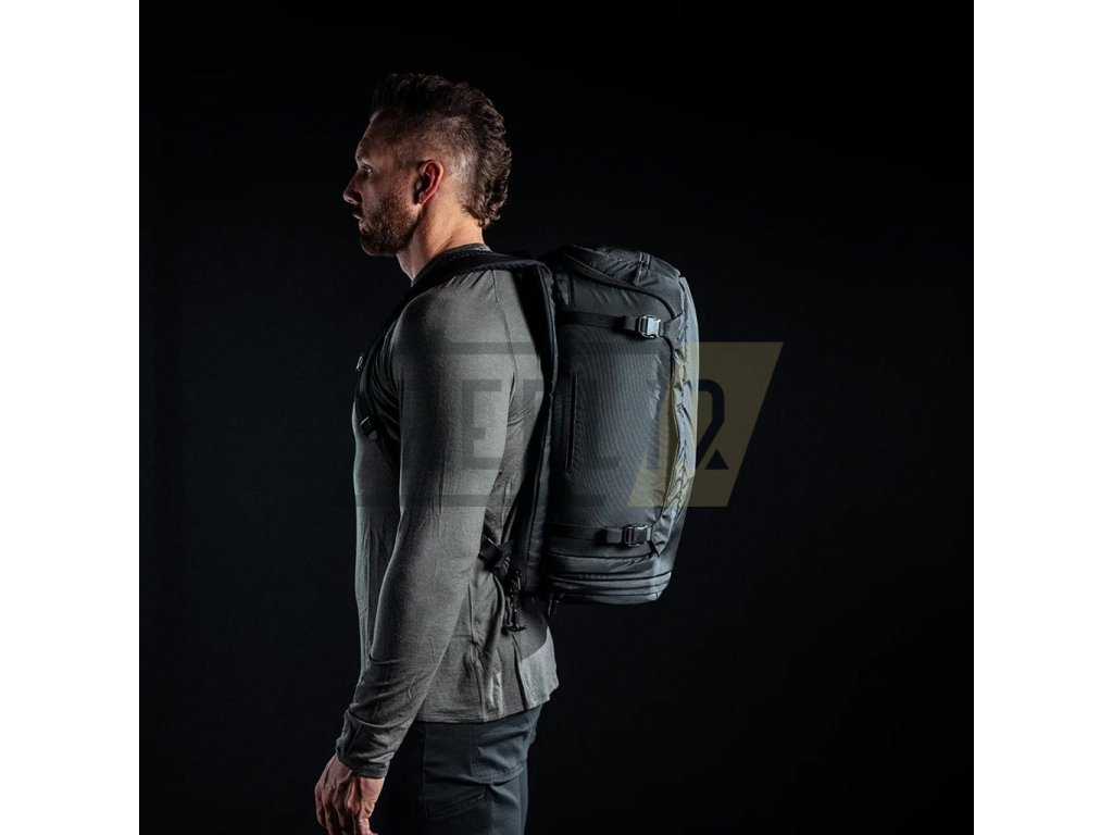 Jak je u značky EBERLESTOCK zvykem, batoh je vybaven pohodlným nosným systémem. Ramenní popruhy jsou anatomicky zakřivené, výškově stavitelné, bohatě polstrované pomocí 3D síťoviny a opatřené elastickým hrudním popruhem s možností výškového nastavení. Záda jsou polstrovaná se zachováním středového kanálku pro odlehčení páteře. V zádech také naleznete samostatnou přihrádku podšitou flaušem. Tu je možné využít pro uložení balistických plátů či dodatečného vybavení kompatibilního se suchým zipem. Boky disponují dvojící kompresních popruhů a přenášecími madly. V horní části se nachází praktická kapsa určená pro přenášení výbavy, kterou chcete mít rychle při ruce. Vstup do interiéru je řešen pomocí dvoucestného zipu, díky kterému je možné rozepnout "křídla" batohu a získat tak rychlý přístup z boku. Po odklopení celé přední chlopně je možné batoh zcela rozevřít a výbavu rychle organizovat dle svých potřeb. Chlopeň samotná navíc obsahuje skrytou kapsu s bočním vstupem. Uvnitř hlavní komory naleznete přihrádku na notebook či hydratační vak, dvě elastické kapsy vhodné například na lahve a skrytou kapsu s integrovaným popruhem s možností rychlého rozpojení. Zesílené dno batohu po rozepnutí slouží k navýšení interního objemu na maximálních 40,7 L.