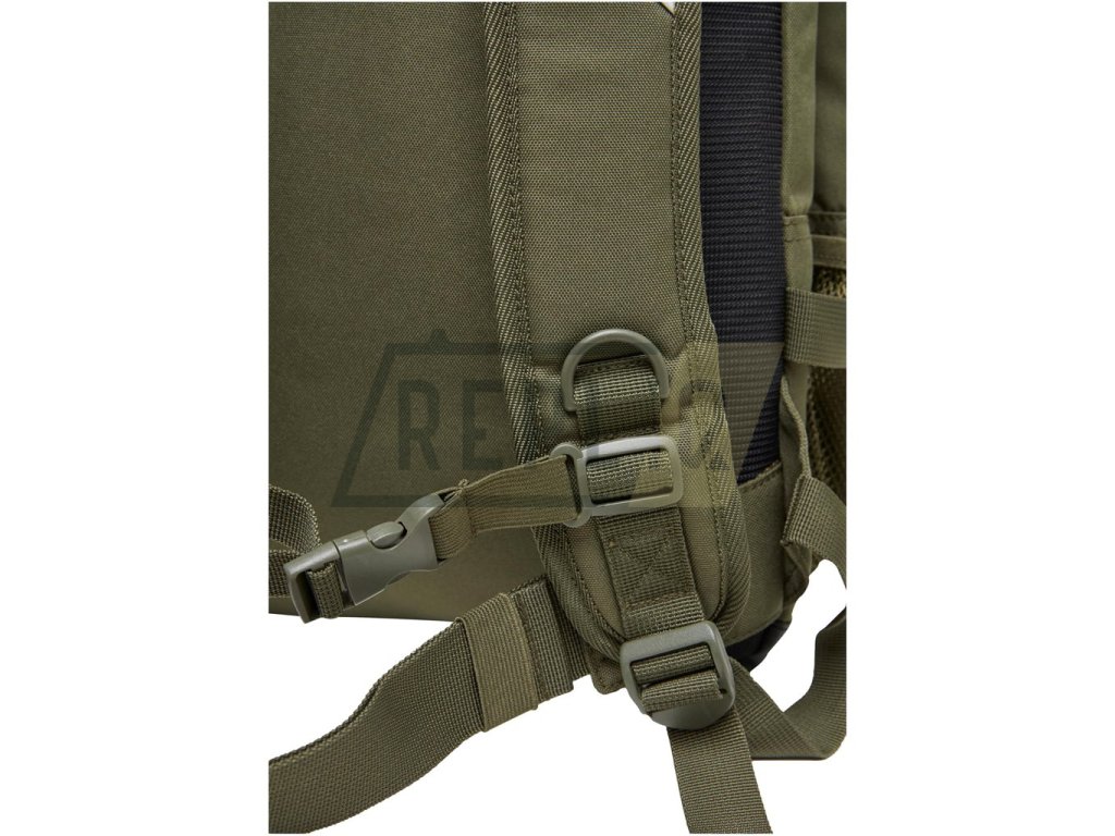 Ramenní popruhy jsou lehce zakřivené, délkově stavitelné a lehce polstrované pomocí 3D síťoviny. Součástí popruhů je ramenní popruh spínaný pomocí plastové přezky a dvojice plastových D kroužků. Batoh má k dispozici i bederní popruh spínaný přezkou. Na bocích batohu naleznete dvojici kompresních popruhů a kapsy ze síťoviny pro vložení láhve či čutory. Na čelní části naleznete jednu velkou odsazenou kapsu s vnějším elastickým šněrováním a menší plochou kapsičkou uzavíranou zipem. V horní části se nachází menší kapsa vhodná pro uložení výbavy, kterou chcete mít rychle při ruce. Neobvyklým předním prvkem jsou i dva čelní fixační popruhy spínané plastovou přezkou.