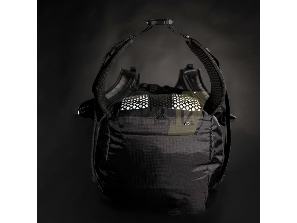 Zádové popruhy jsou mírně zakřivené, délkově stavitelné opatřené stabilizačními popruhy a výškově nastavitelným hrudním popruhem spínaným plastovou přezkou. Bederák je z části polstrovaný, opatřeny kapsičkami na drobnosti a spínaný přezkou. Záda jsou pro maximalizaci komfortu při nošení vyztužena pomocí vnitřního rámu a opatřena extra prodyšnou 3D síťovinou. Boky jsou opatřeny rozměrnými elastickými kapsami na láhve či jinou výbavu a kompresními popruhy s přezkou. Na pravé straně batohu navíc naleznete praktické průvleky na pohodlné přenášení turistických holí. Na čelní straně naleznete menší plochou kapsu na dokumenty a tři elastické průvleky. Obě hlavní komory batohu jsou přístupné skrze dvoucestné zipy s mohutnými hmatníky. Přední komora obsahuje dvě elastické přihrádky.
