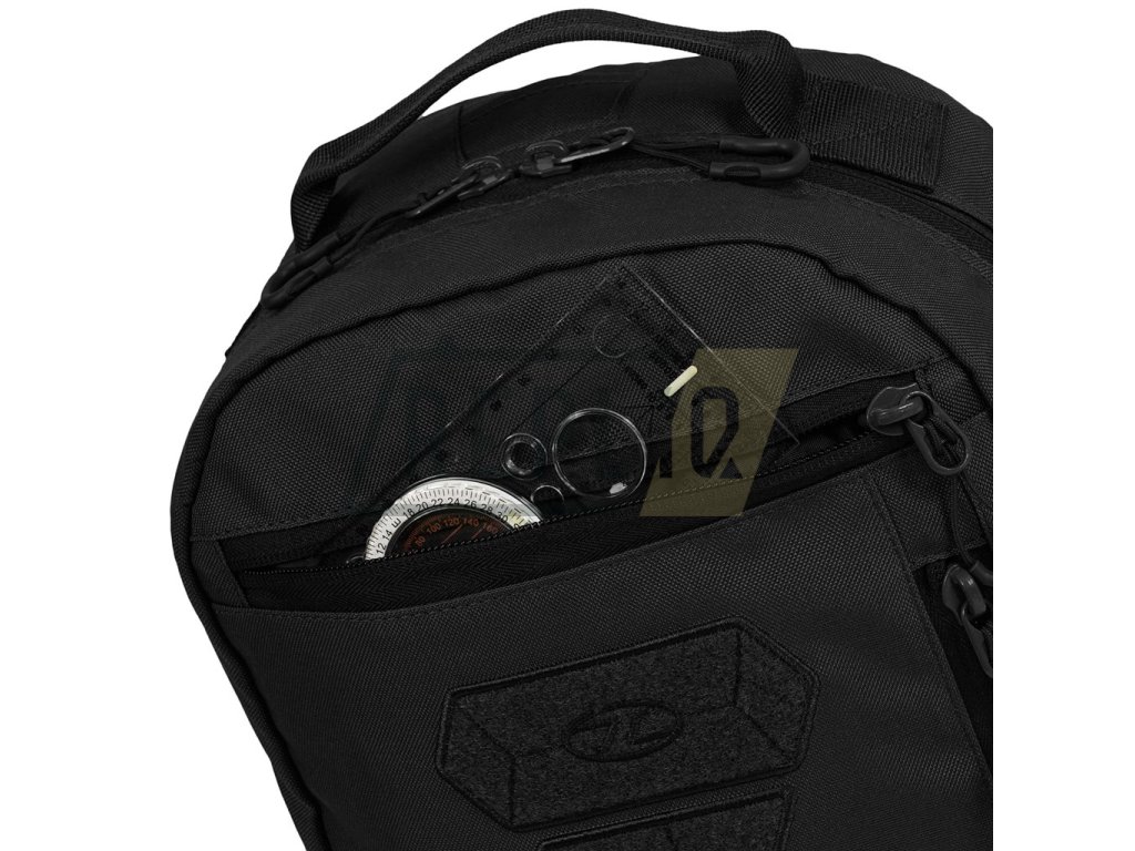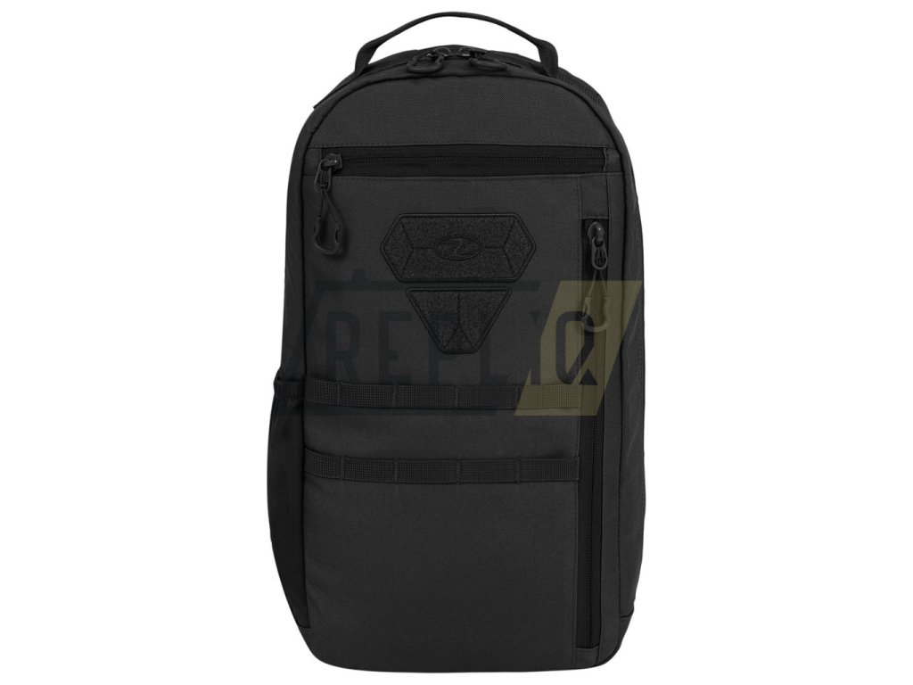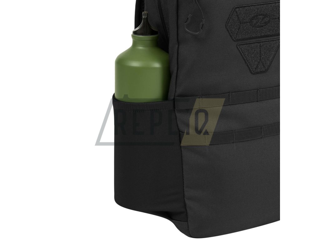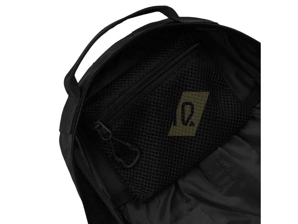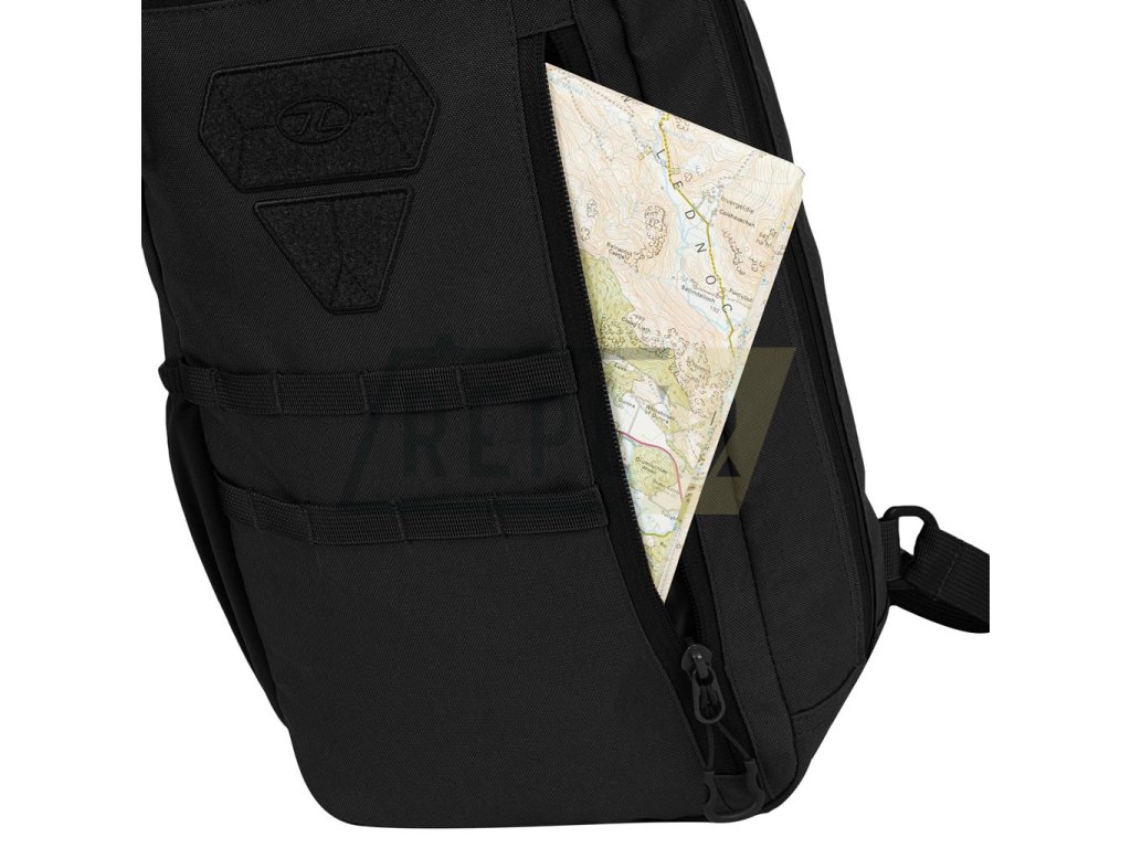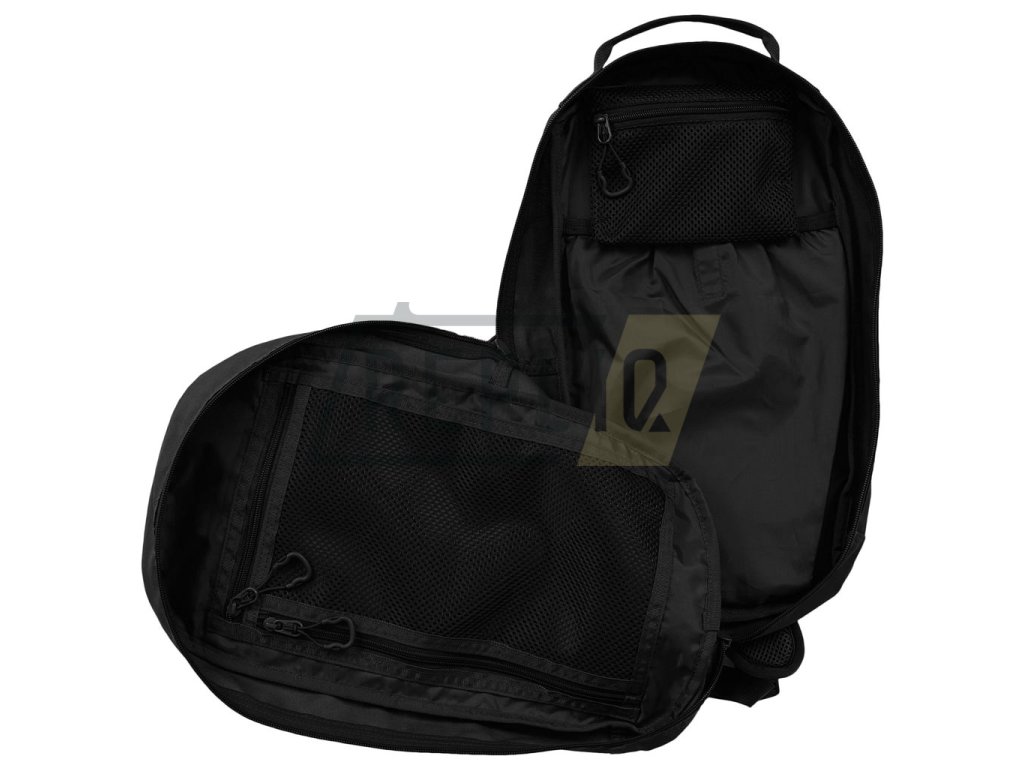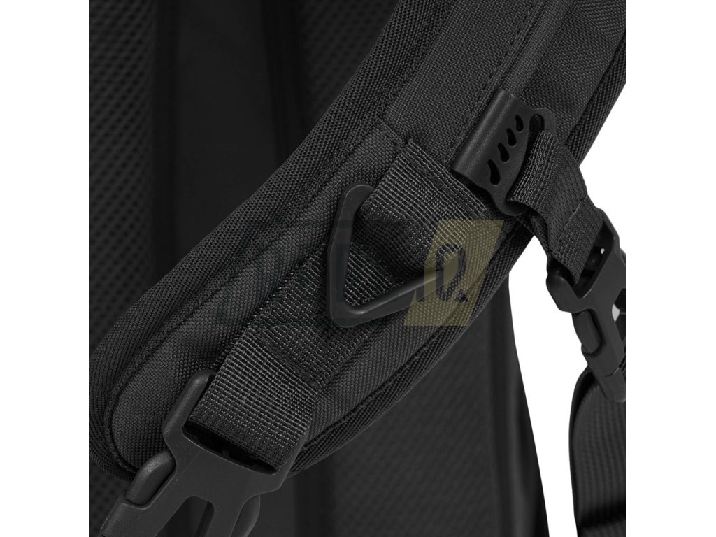 Záda batohu jsou bohatě polstrovaná pomocí 3D síťoviny. Nosný popruh nastavitelný, opatřený plastovým trianglem a malým, výškově stavitelným stabilizačním popruhem spínaným přezkou. Na bocích batohu naleznete elastické kapsy na láhve a drobnější vybavení. Horní část je opatřena madlem na přenášení. Vepředu naleznete dvě řady MOLLE/PALS vazby, dva VELCRO panely a horní kapsu na dokumenty. Hlavní úložný prostor je přístupny skrze dvoucestný zip. Uvnitř se nachází malá odepínatelná kapsa, přihrádka s elastickým okrajem na hydratační vak a velká kapsa ze síťoviny.