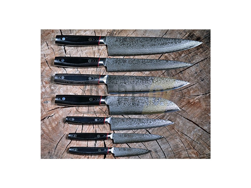 Ostrost: Hamaguriha (konvexní hrana) Vynikající japonská damašková ocel VG-10 je broušena do tvaru "hamaguriba", stejně tak jako japonské meče. Tímto je zaručena dokonalá ostrost a trvanlivost ostří.