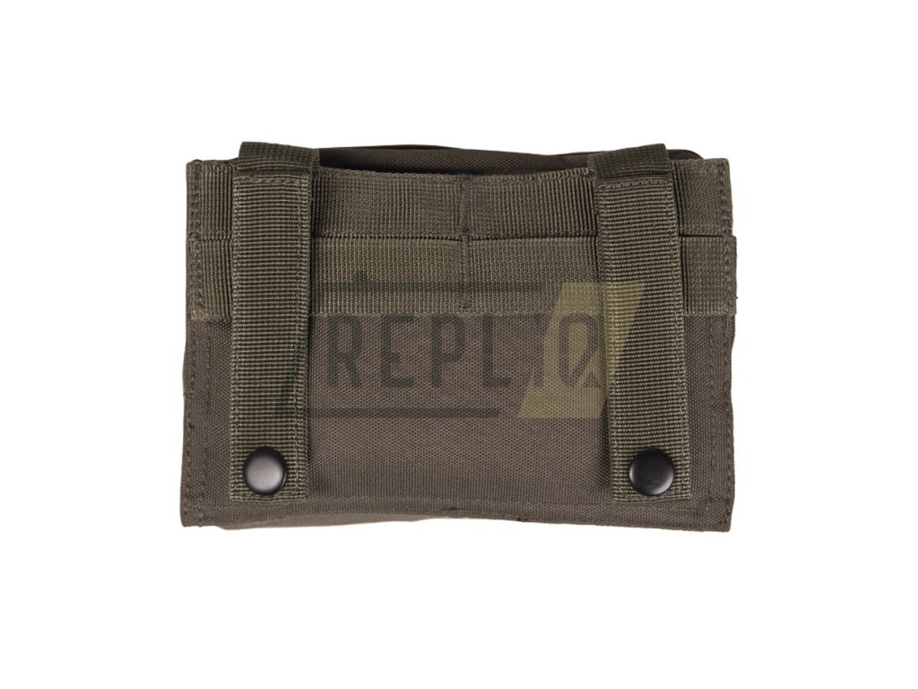 Taktické pouzdro z přední strany s laser MOLLE vazbou, na zadní straně klasické MOLLE pásky na druky. Celou přední stranu pokrývá suchý zip, ideální pro vaše velcro nášivky.