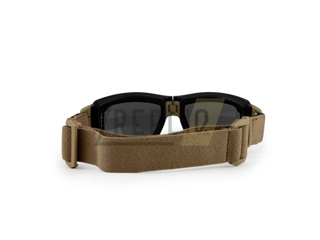 Kompaktní skládací taktické brýle, které jsou perfektní volbou pro parašutisty, motorkáře i hráče airsoftu. Díky své konstrukci nezabírají mnoho místa a můžete je tak mít stále při ruce. Jsou dodávány s pevným přepravním obalem disponujícím dvojicí přihrádek pro uložení náhradních skel a s odnímatelným vnitřním těsněním Facial Cavity, který při použití v brýlích zabraňuje průniku dráždivých částeček, prachu apod. Čelenka je elastická a díky délkovému nastavení ji můžete snadno přizpůsobit své hlavě. Brýle jsou díky tenké čelence plně kompatibilní s nočním viděním.