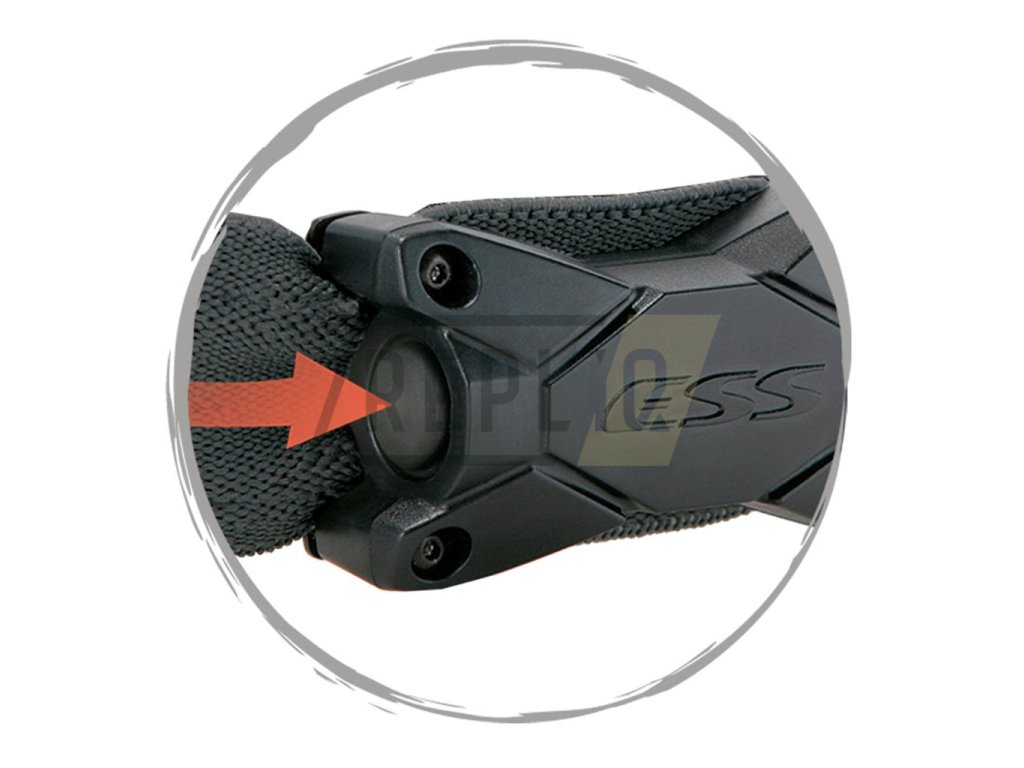 - ESS Outrigger Strap Systém nabízí nejlepší pohodlí při použití s ochrannými helmami.