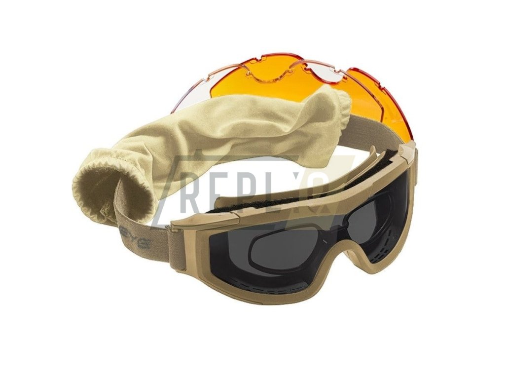 Odlehčené uzavřené taktické brýle dodávané s trojicí náhradních skel (kouřová, oranžová, čirá) a s vložkou pro vložení dioptrických skel. Skla jsou vyrobená z odolného polykarbonátu a chrání před 100% UVA, UVB a UVC zářením. Rám brýlí je vyroben z velmi odolného TPU. Čelenka je nastavitelná a elastická. K brýlím je dodávaný sáček z mikrovlákna na náhradní skla a elastický rukáv pro brýle.