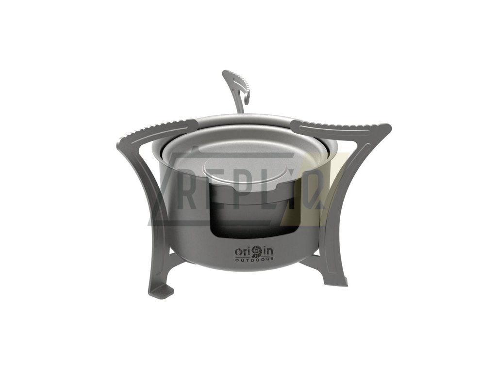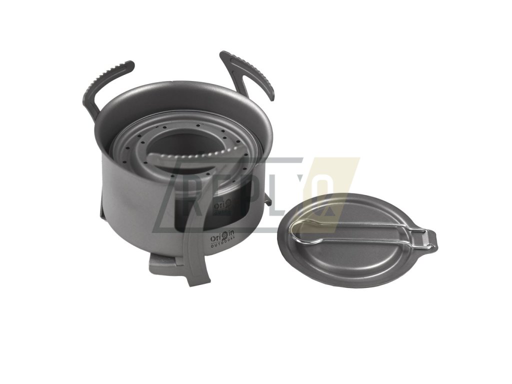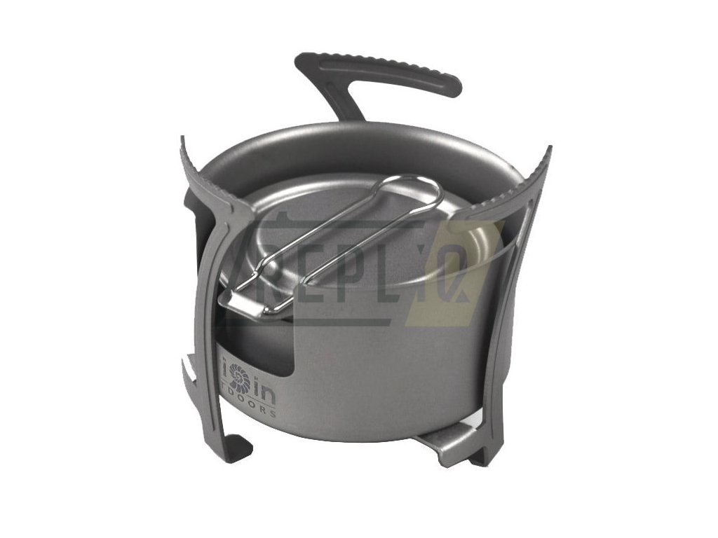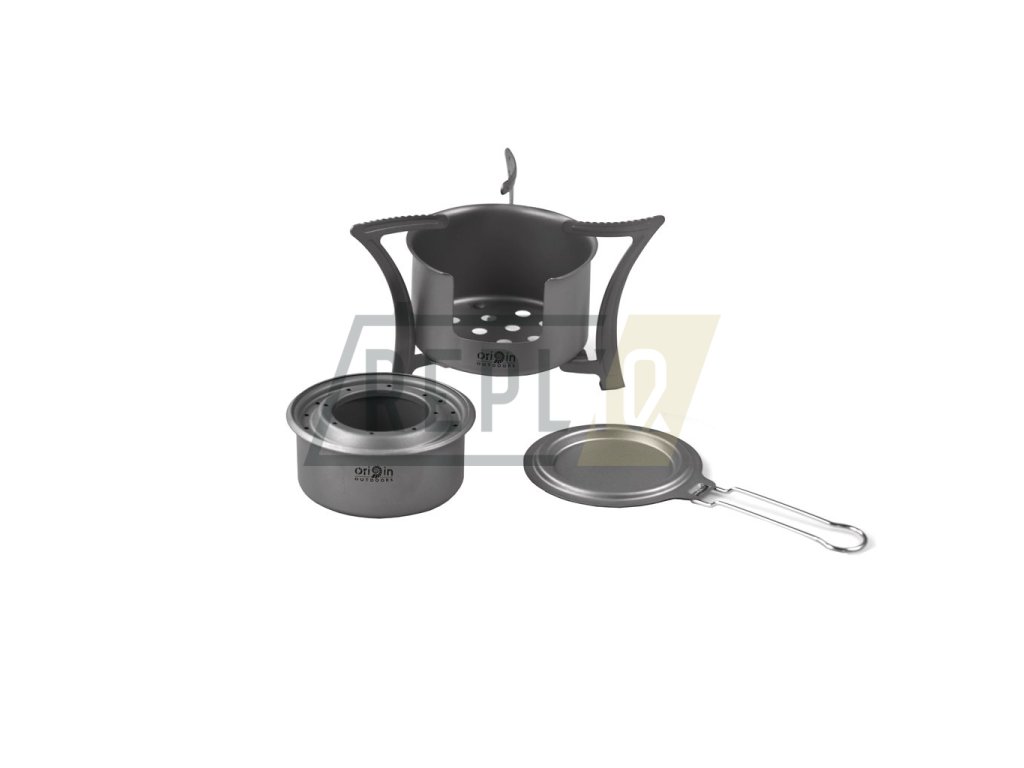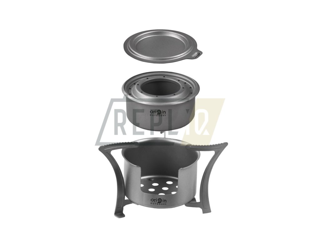 Extra lehký outdoorový vařič vyrobený z titanu s pískovaným povrchem. Díky vyjímatelné vložce je použitelný jak pro pevné, tak tekuté palivo. Nohy vařiče jsou skládací. Miska na tekutá paliva spolu s víčkem snadno zapadnou dovnitř vařiče a ušetří tak místo. K vařiči je dodávaný pevný obal ze síťoviny.