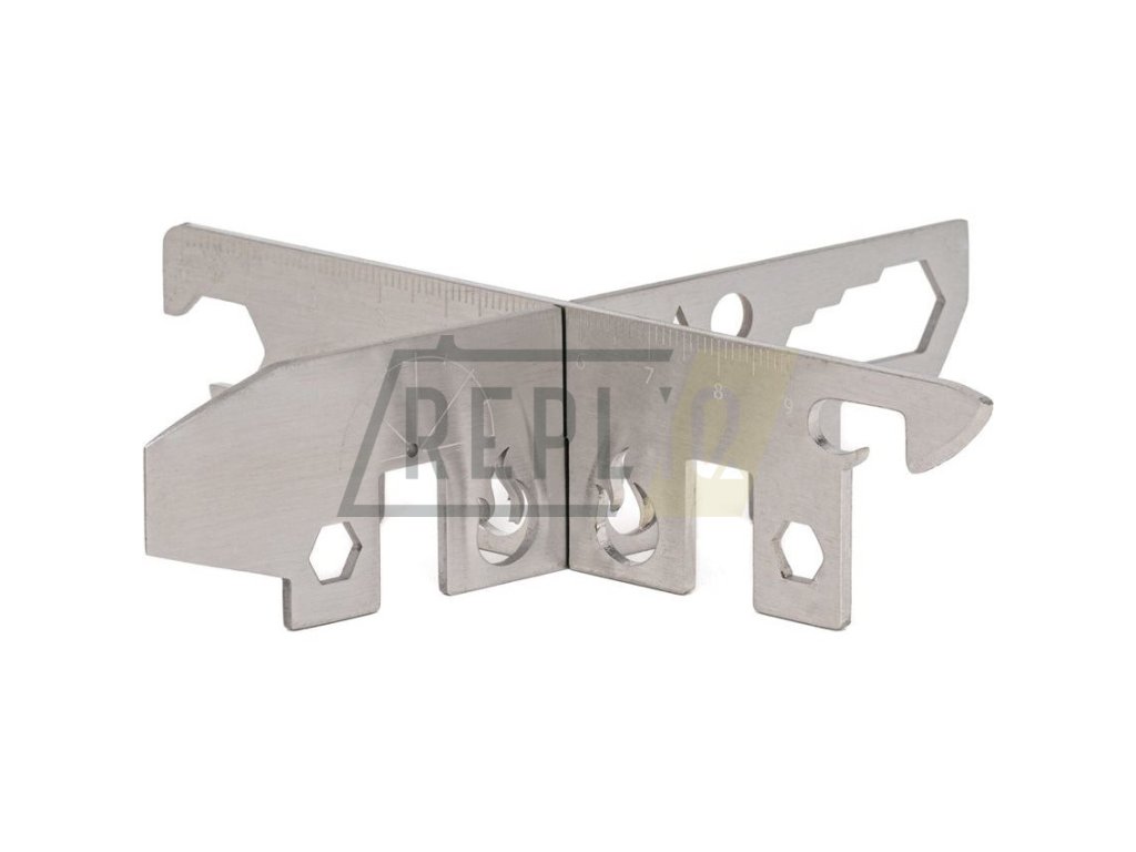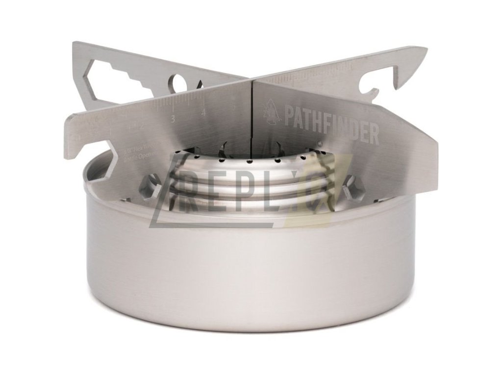 Univerzální nerezový stojan na vařiče s tekutým lihem, který nabízí více, než se na první pohled může zdát. Je vyrobený z nerezové oceli 420 a disponuje celkem devíti dodatečnými nástroji, které vám umožní ušetřit místo na cestách.