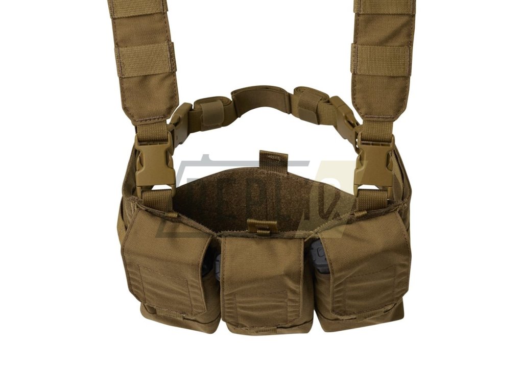 Základ rigu je tvořený středovou platformou se třemi sumkami, které jsou určeny primárně pro přenášení AR/AK zásobníků. Tato středová platforma lze ovšem snadno rozšířit o další kompatibilní vybavení. Na bocích i v horní části rigu naleznete modulární vazbu standardu MOLLE/PALS sloužící především pro připevnění různých sumek a pouzder. Na vnitřní straně je k dispozici panel suchého zipu určený pro připevnění podvěsných pouzder. Středový panel je rozevíratelný a vnitřní plochá kapsa je vhodná k uložení dokumentů. Nosné řemenní tvaru písmene H je délkově nastavitelné, připevněné pomocí plastových přezek a v zadní části opatřené malým panelem suchého zipu pro vaše VELCRO nášivky. Po odpojení je možné chest rig připevnit k nosičům plátů.