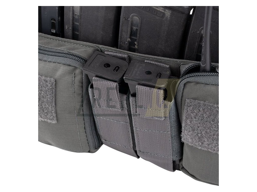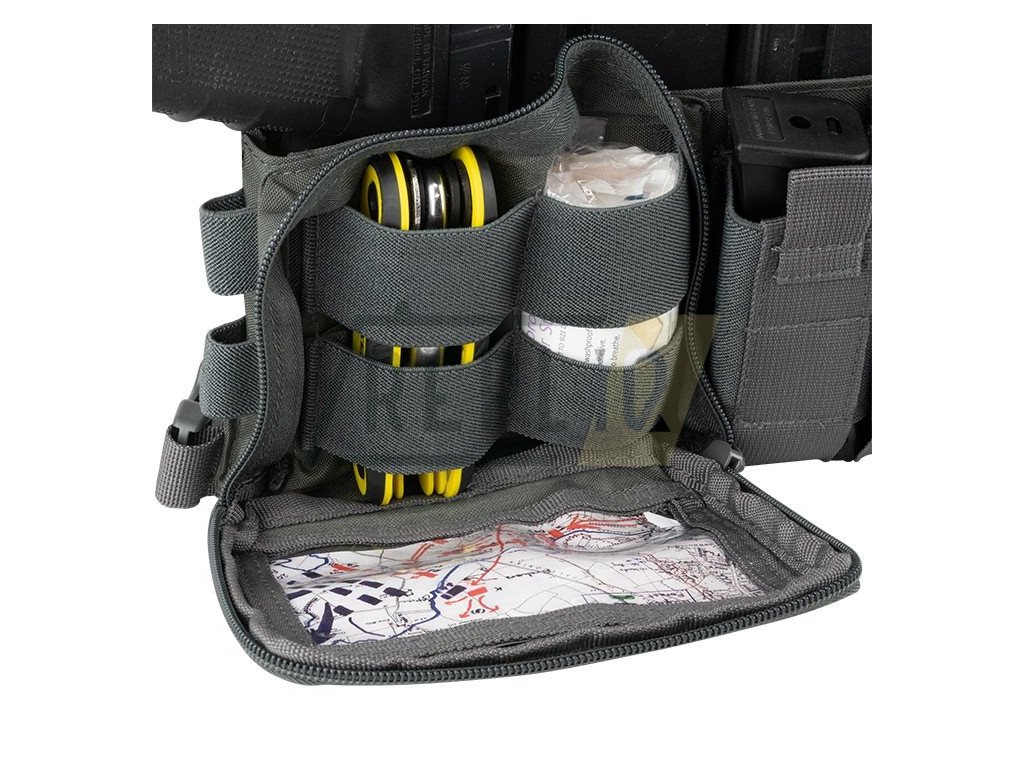 Celou šířku chest rigu za předními sumkami zabírá přihrádka podšitá suchým zipem. Ta slouží k vložení elastických insertů (vkládacích sumek pro zásobníky ráže .308 / .223 / 9 mm L) z kolekce VX nebo jiných kompatibilních. Do boků rigu jsou všitá poutka z pruženky umožňující např. provléknutí tyčinek chemických světel (lightsticků). Nosnou kapacitu chest rigu lze dále zvýšit uchycením podvěsné ledvinky nebo boků s modulární vazbou přes suchý zip na zadní straně vesty.