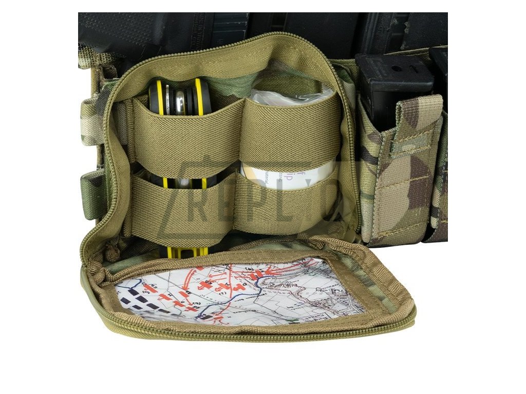 Celou šířku chest rigu za předními sumkami zabírá přihrádka podšitá suchým zipem. Ta slouží k vložení elastických insertů (vkládacích sumek pro zásobníky ráže .308 / .223 / 9 mm L) z kolekce VX nebo jiných kompatibilních. Do boků rigu jsou všitá poutka z pruženky umožňující např. provléknutí tyčinek chemických světel (lightsticků). Nosnou kapacitu chest rigu lze dále zvýšit uchycením podvěsné ledvinky nebo boků s modulární vazbou přes suchý zip na zadní straně vesty.