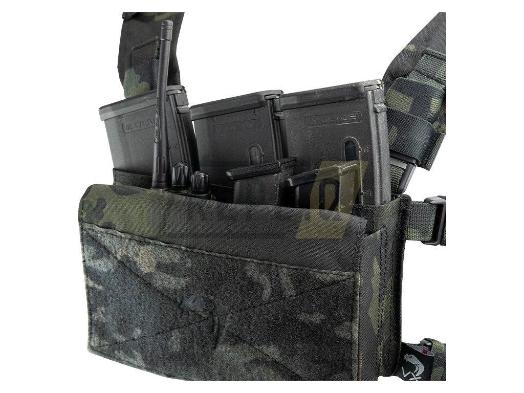 Po odpojení nosných popruhů je možné chest rig připevnit ke kompatibilním balistickým vestám / nosičům plátů (např. VX Buckle Up Gen2) namísto předního panelu.