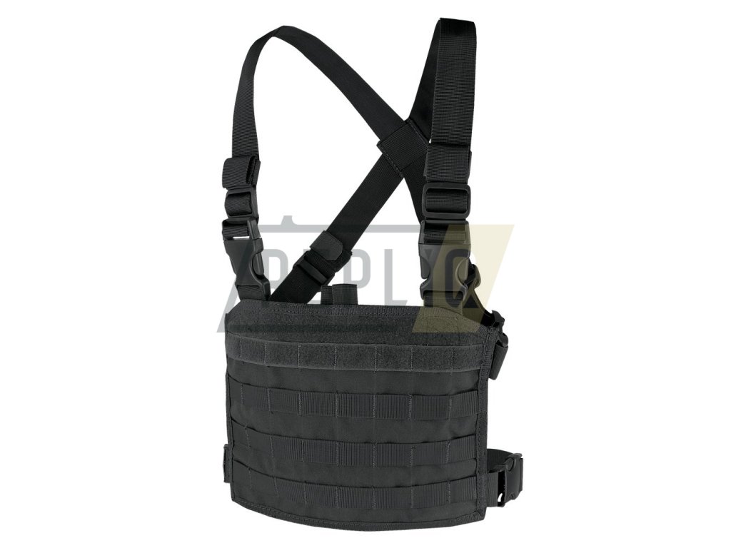 Vesta Modular Chest Panel od americké firmy Condor Outdoor, vesta, nebo spíše hrudní panel s PALS vazbou pro individuální nastrojení příslušenství MOLLE. Panel má čtyři řady vazby PALS, v horní části VELCRO panel (suchý zip) pro snadné přichycení označení. Celý panel slouží i jako kapsa o rozměru 22 x 30 cm, například pro mapu. Panel má křížové Cross-back ramenní popruhy s otočnými Swivi Lockster fastex sponami a stavitelný bederní popruh.