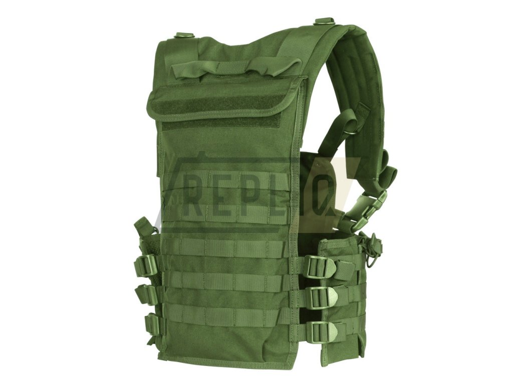 Taktická vesta Modular Chest Set od amerického výrobce firmy Condor Outdoor, profesionální vesta s šesti integrovanými pouzdry pro zásobníky M4 a zádovou kapsou pro bladder (hydratační vak na vodu). Vesta má odnímatelný hrudní panel s PALS vazbou, který slouží i jako admin kapsa a dvě vnitřní boční kapsy. Polstrované ramenní popruhy stavitelné pomocí masivních fastex spon a přední zapínaní na suchý zip, zajištěn dvěma fastex sponami.