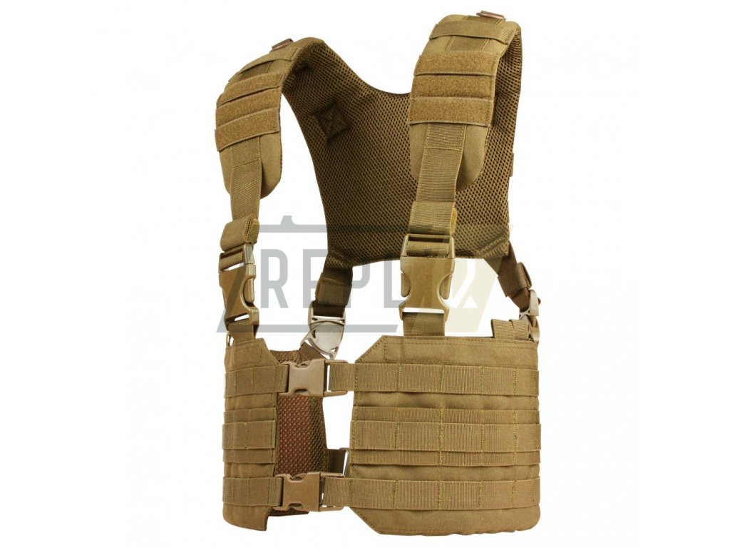 Ronin - taktická modulární vesta typu Chest Rig od firmy Condor s rychloodepínacími sponami a s polstrovanými popruhy do tvaru H. Vesta nabízí dostatek upevňovacích bodů pro připevnění nebo zavěšení výstroje (např. hydratační vak, rádio, karabiny, atd.).