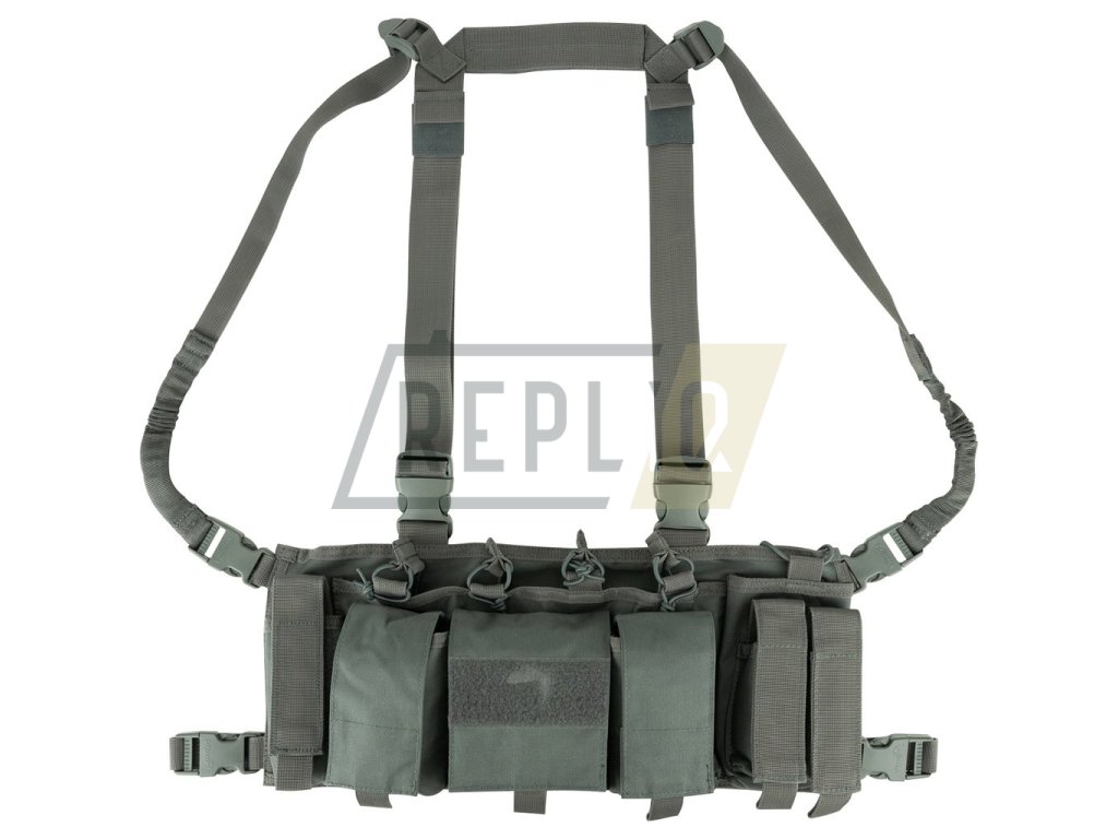 Ramenní popruhy mají tvar písmene H, jsou nepolstrované a délkově nastavitelné v přední i zadní části. Navíc je možné regulovat i jejich rozteč pomocí spojovací "příčky" ze suchého zipu na zádech. Bederní i ramenní popruhy jsou částečně odpružené, což umožňuje chest rig řádně dotáhnout na tělo, aniž by bránil v pohybu či dýchání. V případě nutnosti je možné vestu snadno rozepnout a shodit z těla díky šestici přezek fastex.