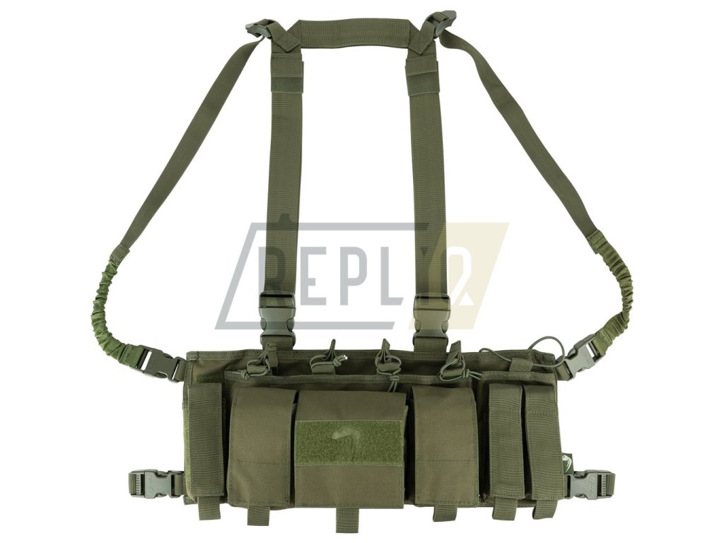 Ramenní popruhy mají tvar písmene H, jsou nepolstrované a délkově nastavitelné v přední i zadní části. Navíc je možné regulovat i jejich rozteč pomocí spojovací "příčky" ze suchého zipu na zádech. Bederní i ramenní popruhy jsou částečně odpružené, což umožňuje chest rig řádně dotáhnout na tělo, aniž by bránil v pohybu či dýchání. V případě nutnosti je možné vestu snadno rozepnout a shodit z těla díky šestici přezek fastex.