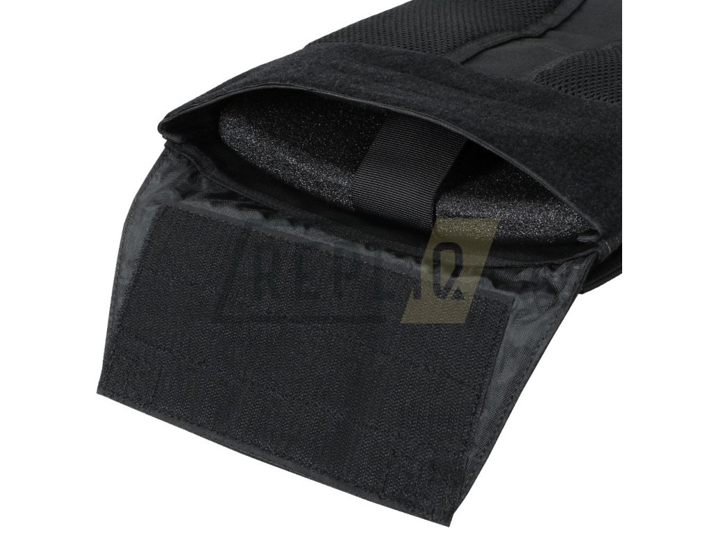 Ramenní popruhy jsou sendvičové konstrukce a zapínají se pomocí suchých zipů. Na přední i zadní straně nosiče naleznete velký VELCRO panel, který bez problémů pojme vaše jmenovky a nášivky. V přední části naleznete plochou kapsu uzavíranou pomocí suchého zipu. Tato kapsa je celá pošitá laserem vyřezávanou MOLLE/PALS vazbou a pod sebou skrývá velikostní nastavení vesty. Zadní panel MOLLE/PALS vazby po odklopení odkryje jednoduché stahování. Boky vesty jsou z vyřezávaného laminátu vyztuženého proužky plastu. Pro maximální pohodlí je vesta z vnitřní strany vypolstrovaná.