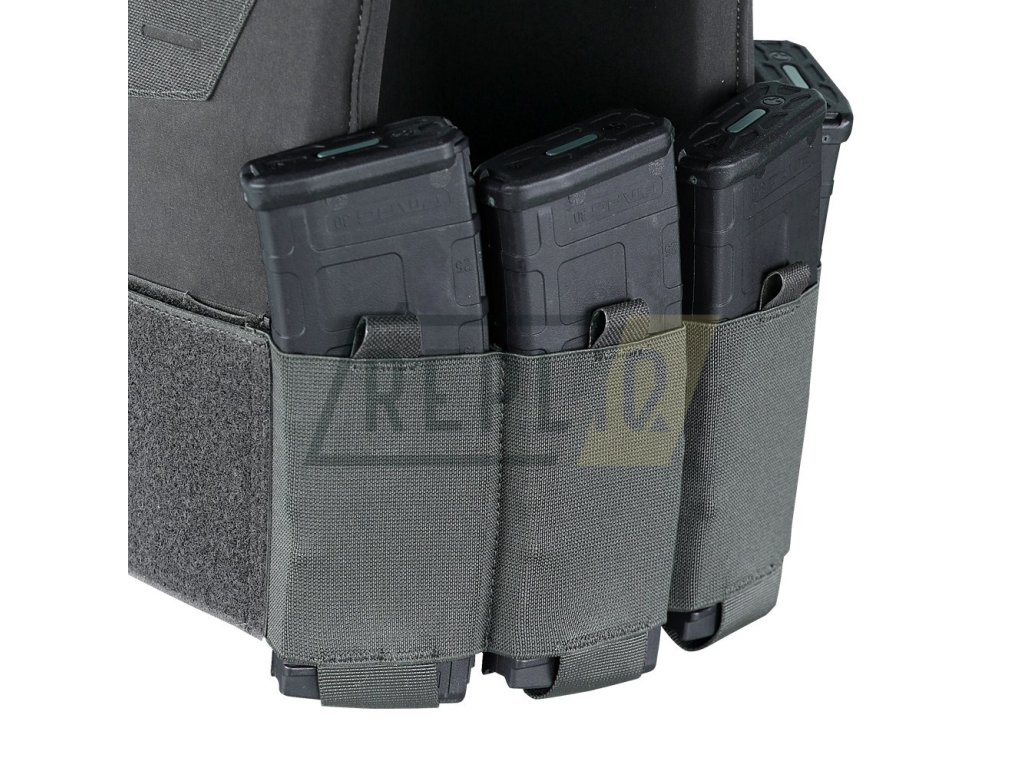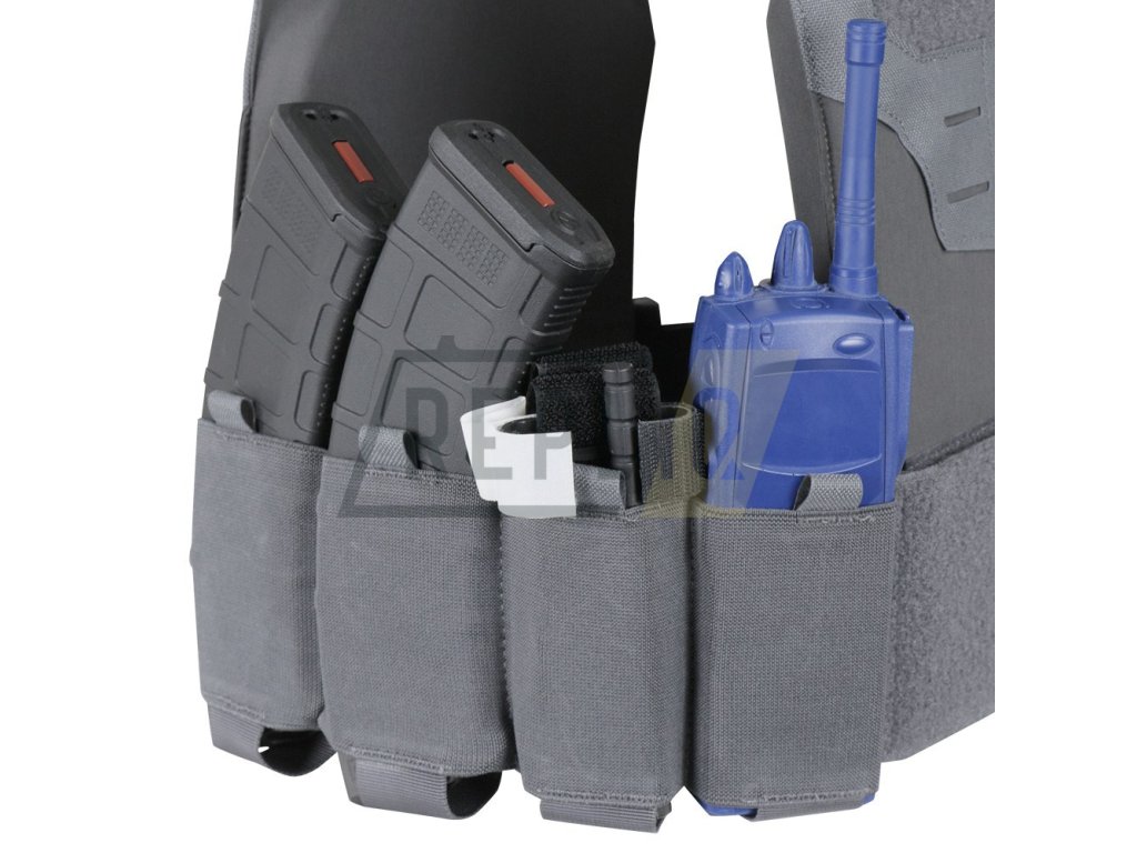 Velikostně nastavitelné nosné popruhy vesty jsou zesílené pevným nylonem. Na přední i zadní straně naleznete velký panel suchého zipu na jmenovky, nášivky či kompatibilní VELCRO sumky a dvě řady laserem vyřezávané MOLLE/PALS vazby. Elastické boky vesty jsou odepínatelné (mohou sloužit i samostatně) a jsou opatřené malými kapsami na suchý zip vhodnými pro vložení zásobníků, škrtidel, rádií a velikostně podobného vybavení.