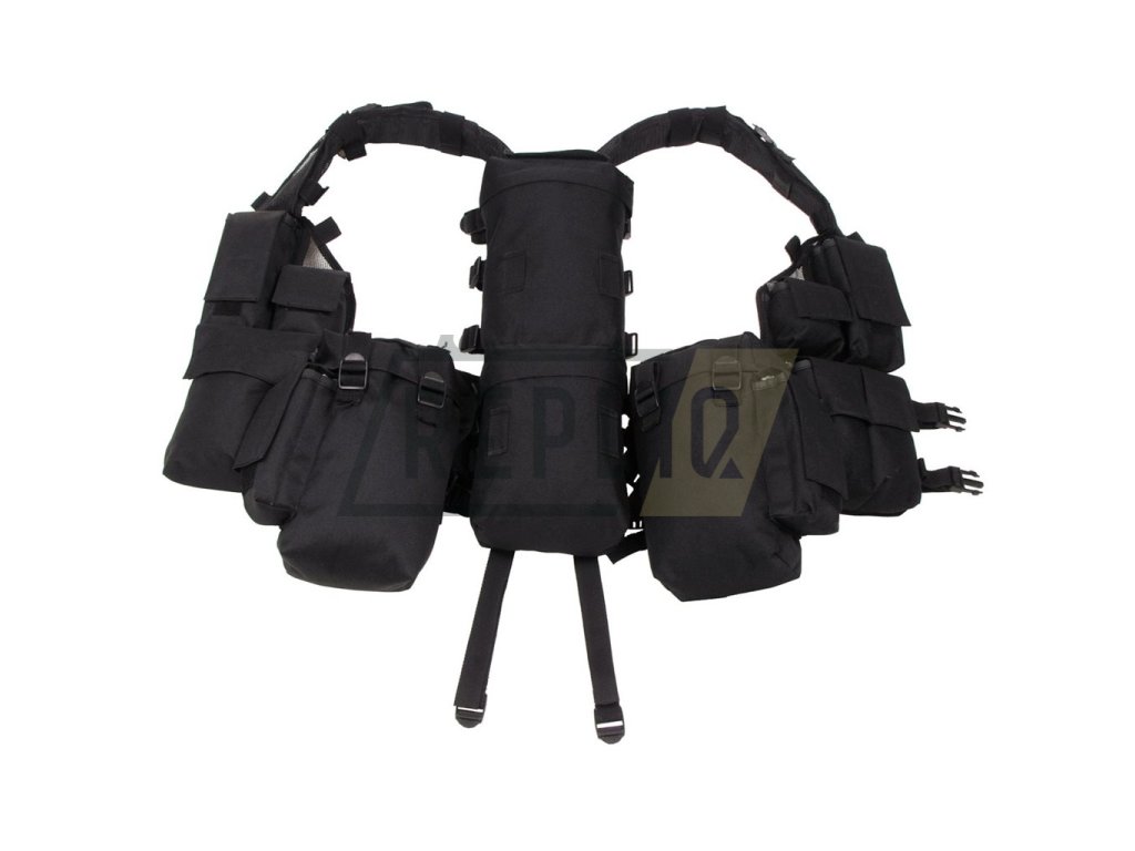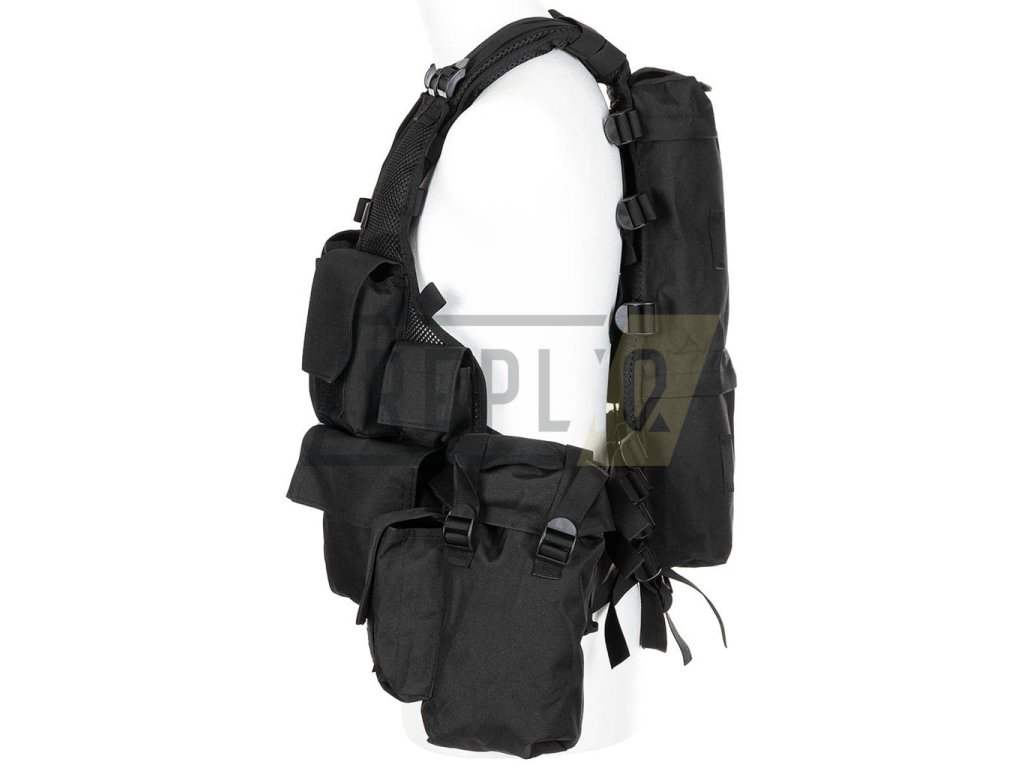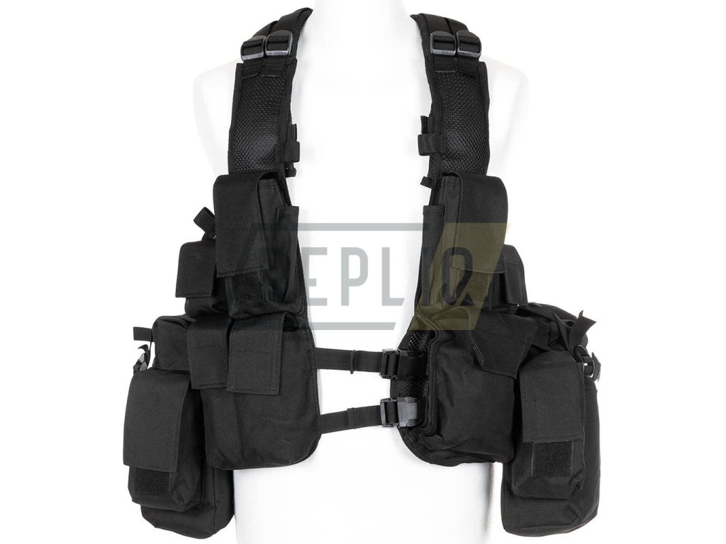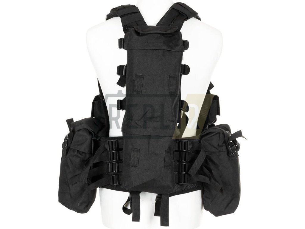 Bezopasková taktická vesta má polstrované ramenní popruhy a mnoho účelně připevněných kapes. Na zádech kapsa pro hydratační vak, dvě velké užitkové kapsy, kapsa na lékárnu, dvě univerzální sumky, dvě granátové sumky a čtyři sumky na zásobníky. Jelikož je na vestě nastavitelná délka i šířka, snadno si ji upravíte podle vaší postavy.