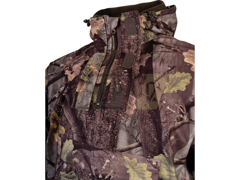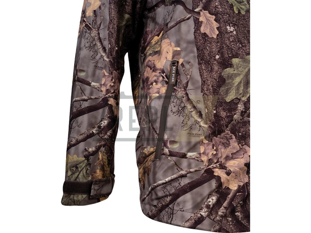 Bunda s kapucí od kvalitního výrobce JACK PYKE je sázkou na jistotu, že budete spokojeni. Vyrobená je z nepromokavého a zároveň prodyšného materiálu, který vám zajistí v nepříznivých podmínkách maximální komfort. Pokud si natáhnete přes hlavu kapuci, tak uvítáte fleece, který je uvnitř kapuce a tím vás zahřeje. Kapuci lze stáhnout pomocí šňůrky a brzdiček. Krk si odhalíte nebo zapnete zipem, který je chráněný překrytím na suchý zip. Zbytek uvnitř bundy pokrývá síťovina sloužící k tomu, aby veškeré vlhko bylo odváděno co nejefektivněji. Na nošení věcí můžete použít velkou přední kapsu na zip a ruce si dáte do šikmých postranních kapes na voděodolný zip. Manžety na rukávech se stahují suchým zipem. Bunda má prodloužený střih, tudíž vám chrání záda proti profouknutí. V bocích lze bundu stáhnout šňůrkou s brzdičkou. Jedinečné maskování, která z vás dělá v lese takřka neviditelnými.