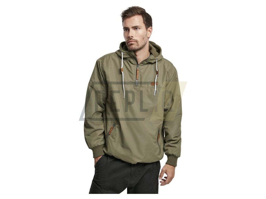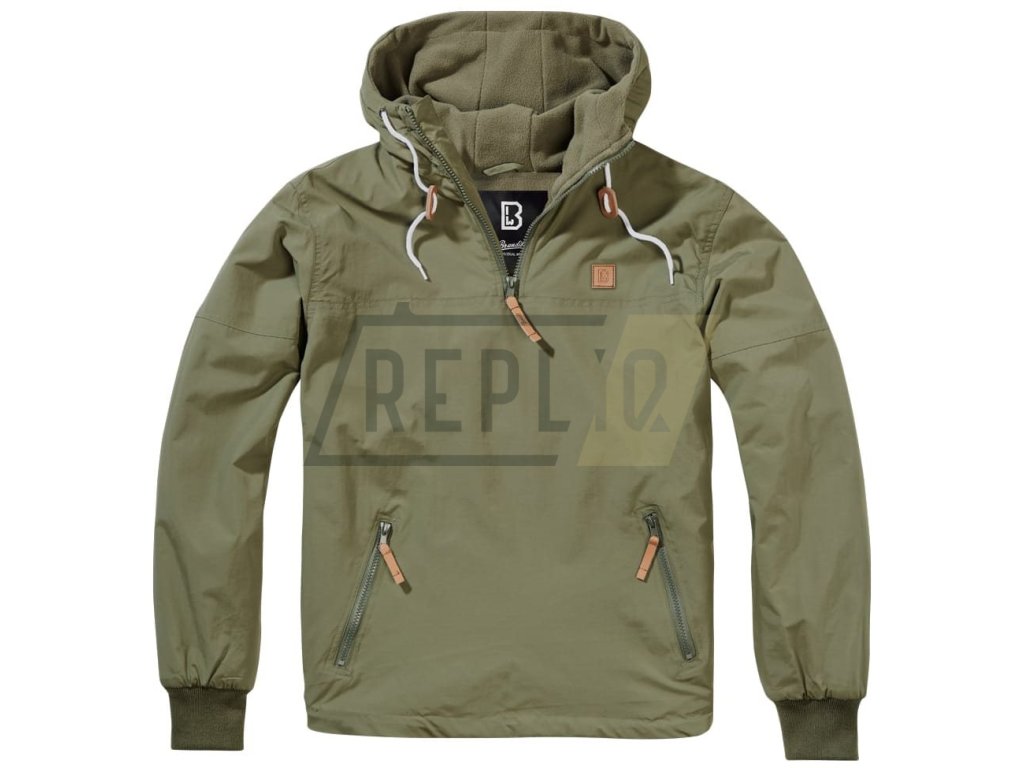 Kapsy na ruce mají šikmé vstupy a zapínají se pomocí zipů s koženými hmatníky. Kapuci je možné stáhnout pomocí tkanice. Rukávy jsou zakončené elastickým úpletem. Na hrudi naleznete malou koženou nášivku s logem BRANDIT. Tříčtvrteční zip je opatřen koženým táhlem.
