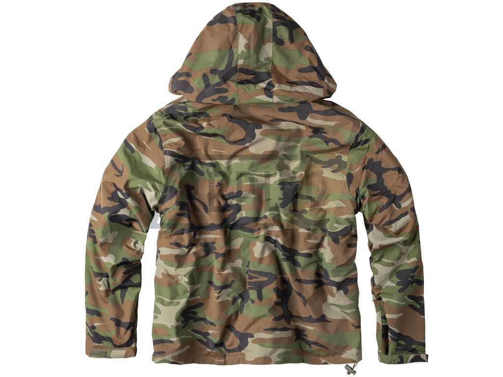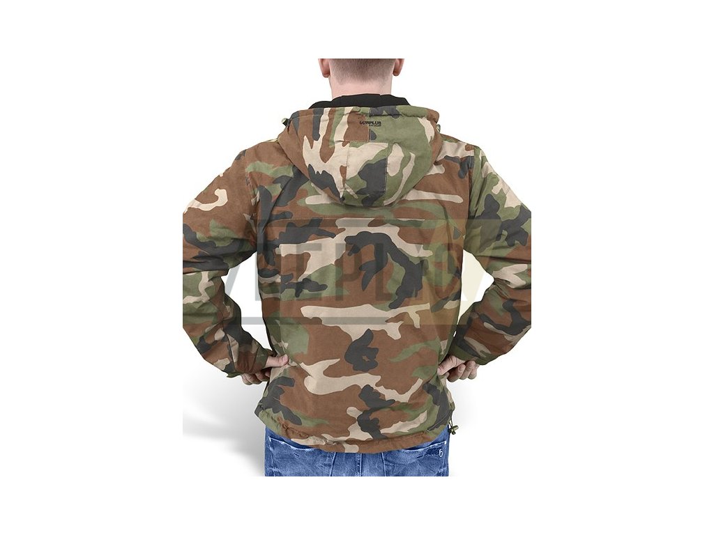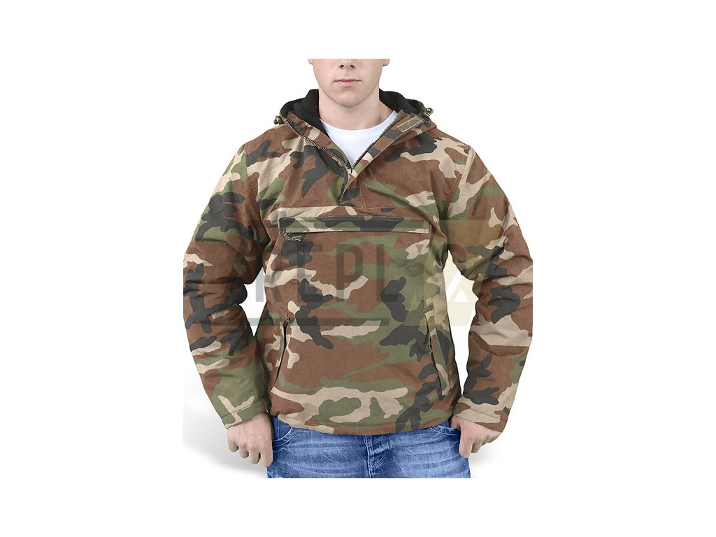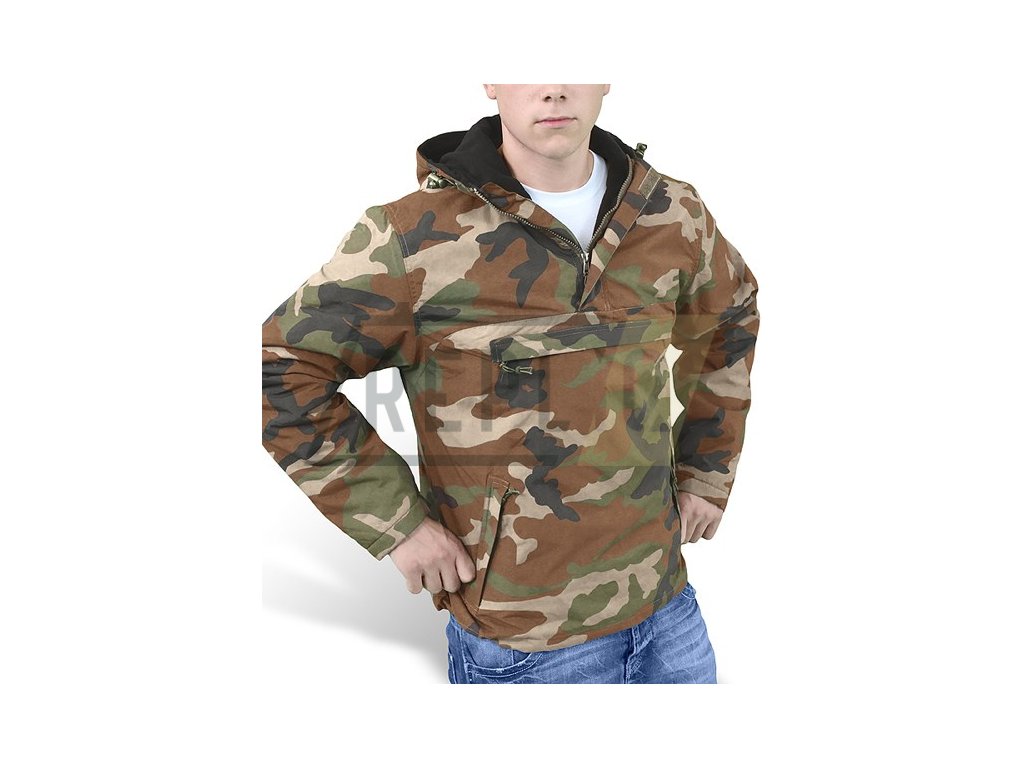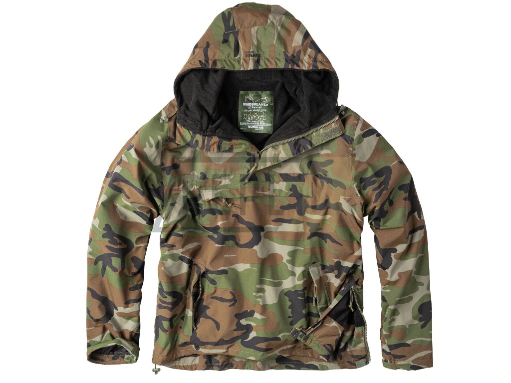 Lehká, prodyšná a díky nylonovému povrchu i nepromokavá větrovka Surplus Windbreaker. Je vybavena pouze krátkým zipem a navléká se přetažením přes hlavu. Toto řešení ještě více zvyšuje odolnost proti větru. Všechny kapsy (jedna velká na hrudi a dvě boční) jsou vybaveny zapínáním na zip a jsou zakryty légami. Zvýšená přední část límce dobře chrání krk, kapuce je stahovací na šňůrku. Šířku pasu lze upravit pružnou tkaničkou, šířku manžet rukávů pomocí suchého zipu. Na levé straně bundy se nachází zapínatelný rozparek, který umožňuje snazší přístup ke kapse u kalhot.