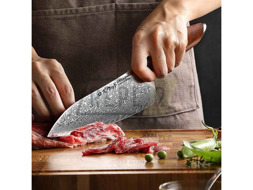 Nože ze série Dellinger Rose Wood Damascus jsou vizuálně ohromující, neuvěřitelně lehké a skvěle padnou do ruky pravákům i levákům. Každý kuchař ocení nejen jejich výjimečný design, perfektní ergonomii a dokonalé opracování.