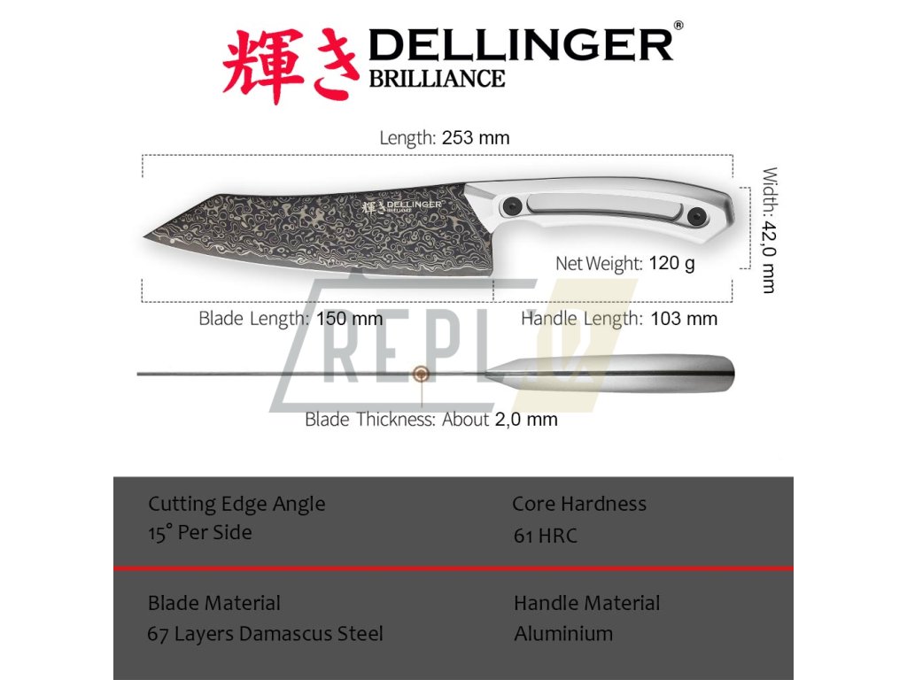 Malý nůž Chef/Kiritsuke 150 mm Dellinger Brilliance + ZDARMA rukojeť G10 + Sleva 100,- Kč s kódem "DELI100"