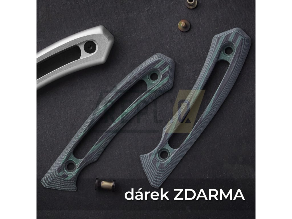Spojení technického designu, funkčnosti a elegance dělá z této rukojeti nejen praktický, ale i vizuálně výrazný prvek celého nože. A pokud toužíte po změně, můžete design nože jednoduše upravit výměnou za alternativní rukojeť z odolného materiálu G10 – například v kontrastní černo-zelené variantě. Tím získáte nejen jiný vzhled, ale i odlišný hmatový dojem a osobitý styl.