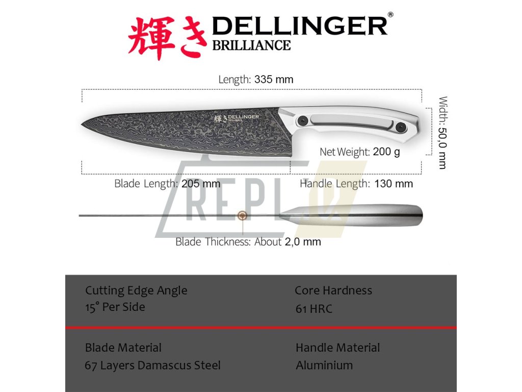 Nůž Gyuto/Chef 205 mm Dellinger Brilliance + ZDARMA rukojeť G10 + Sleva 200,- Kč s kódem "DELI200"