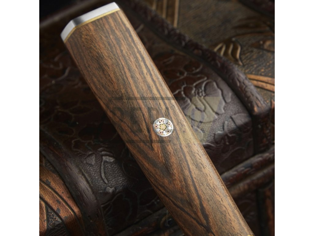 je vyrobena z exotického dřeva Cocobolo, které je vyhledávané pro svou barvu a texturu. Dřevo Cocobolo je vysoce ceněné tropické tvrdé dřevo pocházející ze střední Ameriky, zejména z Mexika, Panamy, Kostariky a Nikaraguy. Cocobolo je extrémně tvrdé a husté dřevo s přirozeným obsahem oleje, který poskytují vynikající odolnost vůči vodě a vlhkosti. Je velmi stabilní a dobře odolává změnám vlhkosti a deformacím. Kvůli své tvrdosti je dřevo Cocobolo obtížné řezat a brousit - rukojeti jsou ergonomicky tvarované a navržené pro vynikající ruční ovládání. Speciálně navržený tvar záštity je vhodný pro asijský úchop nože.