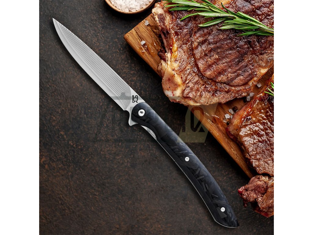 Zavírací steakový nůž 100 mm SOK Shark VG-10 Damascus Carbon + Sleva 100,- Kč s kódem "DELI100"