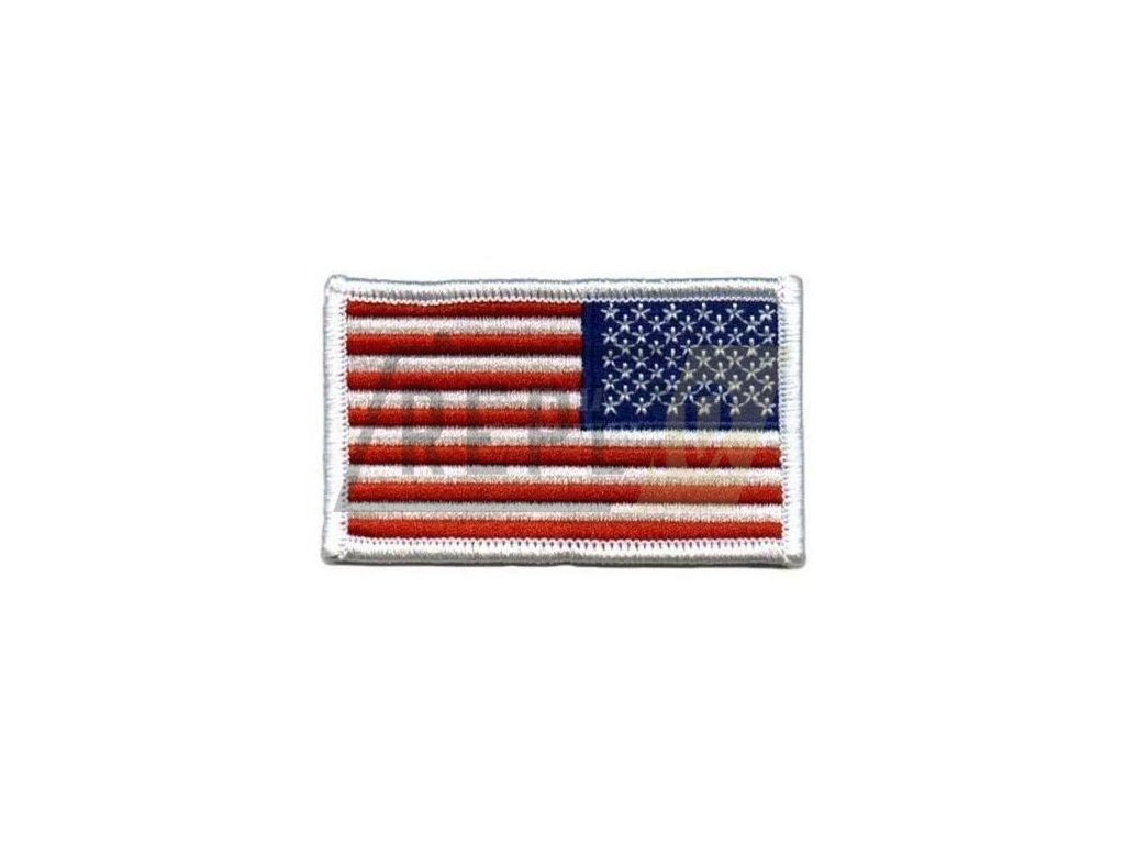 Textilní nášivka s vlajkou USA, rozměr cca 7,5 x 5 cm. Reverzní (převrácené) provedení. Nažehlovací vrstva.