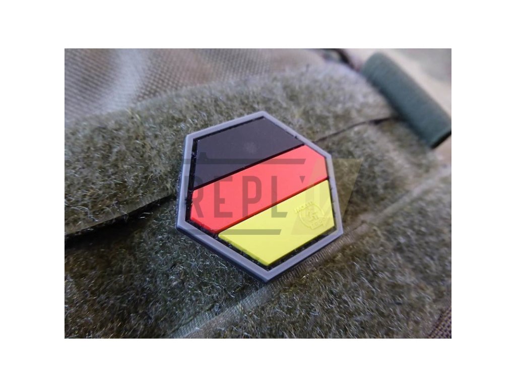 Plastová 3D nášivka - plnobarevná německá vlajka v šestiúhelníku.