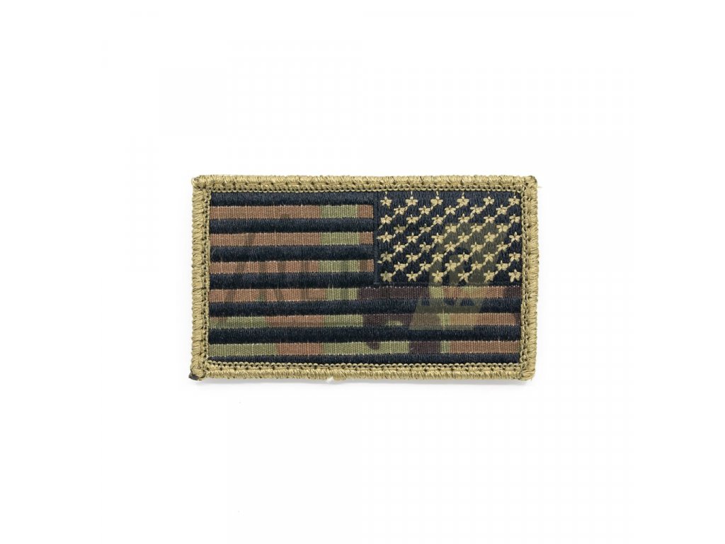 Reverzní nášivka s vlajkou USA na podkladu v maskovacím vzoru OCP. Rozměr cca 8 x 4,8 cm. Na zadní straně se suchým zipem.