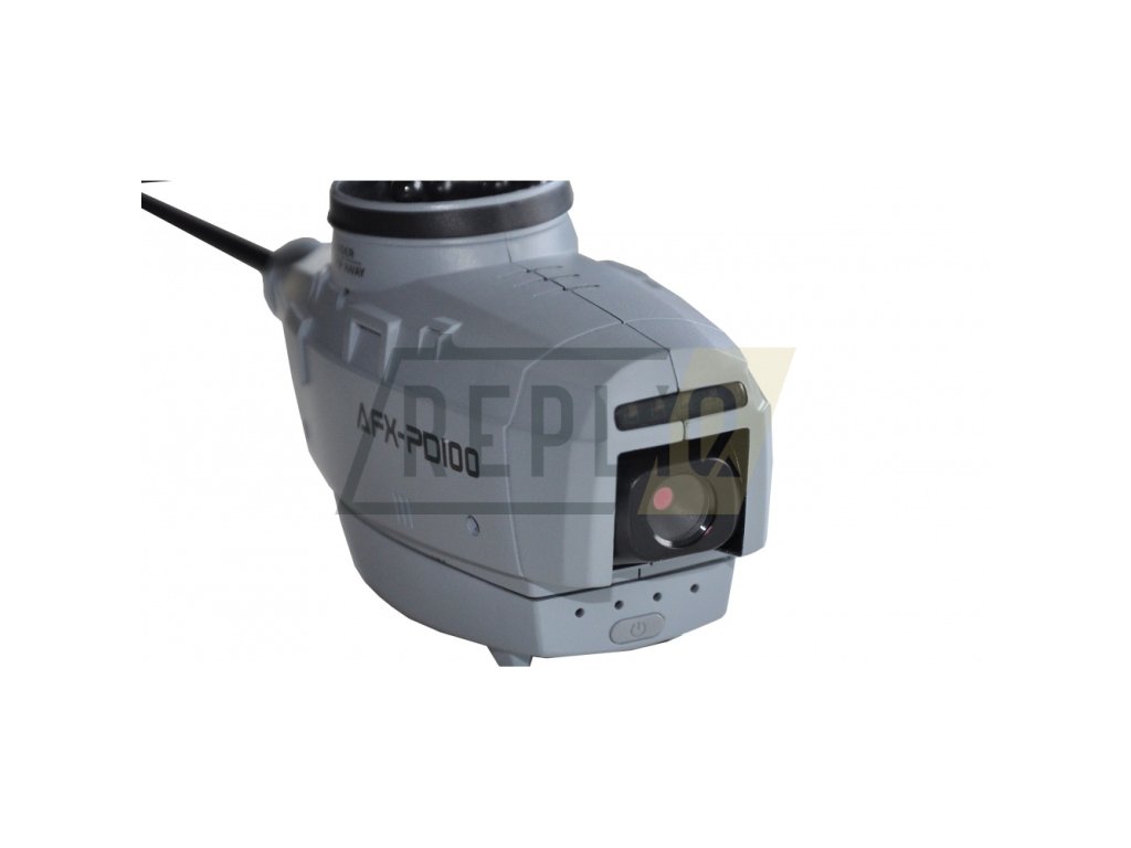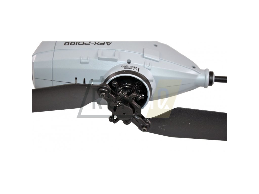 PD100 je replikou známého pátracího a záchranného dronu, který používá mimo jiné armáda. Model zaujme nejen robustní konstrukcí, ale také detailním vzhledem. Hlava rotoru je ovládána přesným stabilizačním systémem a dává dronu zcela nový pocit z ovládání díky automatickému vzletu a automatickému přistání. Díky nové elektronice je nyní snadné s takovým modelem létat i pro začátečníky bez jakýchkoliv předchozích znalostí. PD100 se spustí stisknutím tlačítka na praktickém 2,4GHz vysílači s kovovými pákami a sám se vznese do určité základní výšky. Dron tam zůstane (v režimu udržování nadmořské výšky) a pilot se může plně soustředit na základní funkce, aniž by musel současně věnovat pozornost výšce letu. Gyro systém také ovládá ocasní rotor a udržuje model stabilní ve vzduchu. Pro větší obratnost v letu jsou k dispozici tři rychlostní stupně, které jsou stejně zajímavé pro začátečníky i pokročilé uživatele. To znamená, že PD100 je vhodný i pro venkovní použití (při slabém větru) a může dosahovat vysokých rychlostí v dopředném letu. Pro přistání lze znovu stisknout tlačítko start/přistání na vysílači: model se opět jemně ponoří k zemi. Motor má měkký rozběh a měkký doběh. To znamená, že při startování se rotor pomalu otáčí a tím zabraňuje otáčení modelu kolem vlastní osy. Totéž platí při přistání: rotor se pomalu zastaví a motor se automaticky vypne. Jako další bezpečnostní prvek má PD100 monitor napětí, který během letu neustále kontroluje baterii. Po dosažení základního napětí začne LED osvětlení blikat, což signalizuje, že byste měli co nejrychleji přistát. Pokud pilot nereaguje, systém automaticky převezme přistání, aby ochránil baterii.