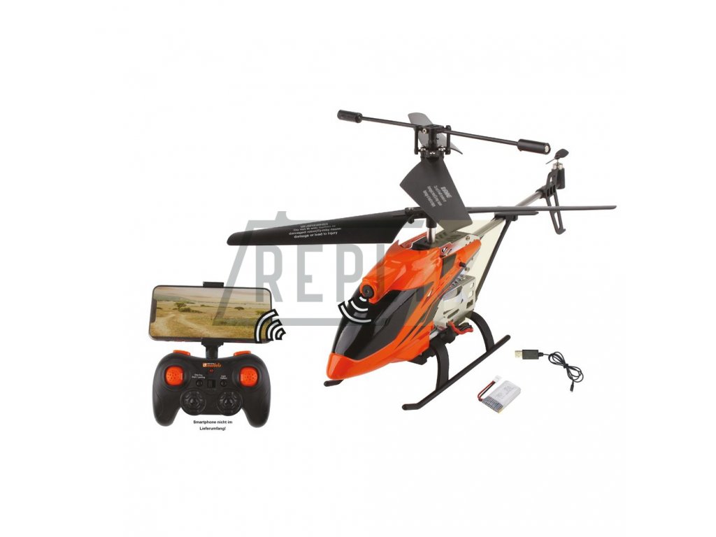Kvalitní německý výrobce DF Models představil svou novinku v podobě netradičního vrtulníku s kamerou a názvem DF-100 FPV. Jak již prozrazuje název, vrtulníček je osazen HD kamerou s funkcí FPV (first-person view) což znamená, že dokáže přenášet obraz v reálném čase přímo na Váš mobilní telefon. DF-100 je vyrobená s důrazem na letové vlastnosti a také kvalitu, což podtrhuje hliníkové šasi a kabina z pružného odolného plastu. Vrtulník využívá i moderní funkce včetně barometru, model drží nastavenou výšku, nebo třeba AUTO vzlet/přistání. To vše doplňuje LED osvětlením, které oceníte hlavně za ztížených světelných podmínek. Samozřejmostí je ovládání na pásmu 2.4 GHz se 3 kanály. Balení je ve verzi RTF kde najdete kromě baterií do ovladače vše potřebné pro provoz.