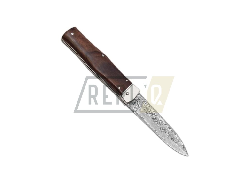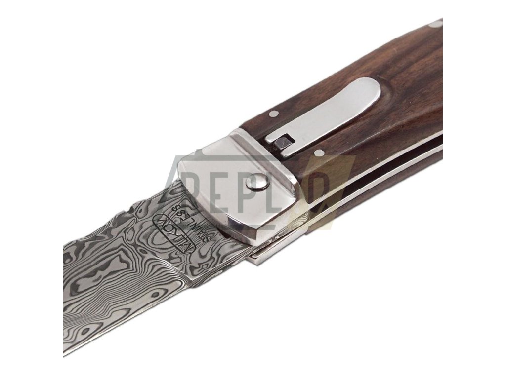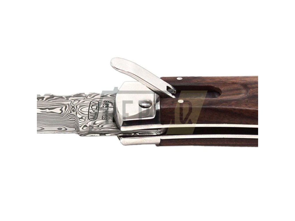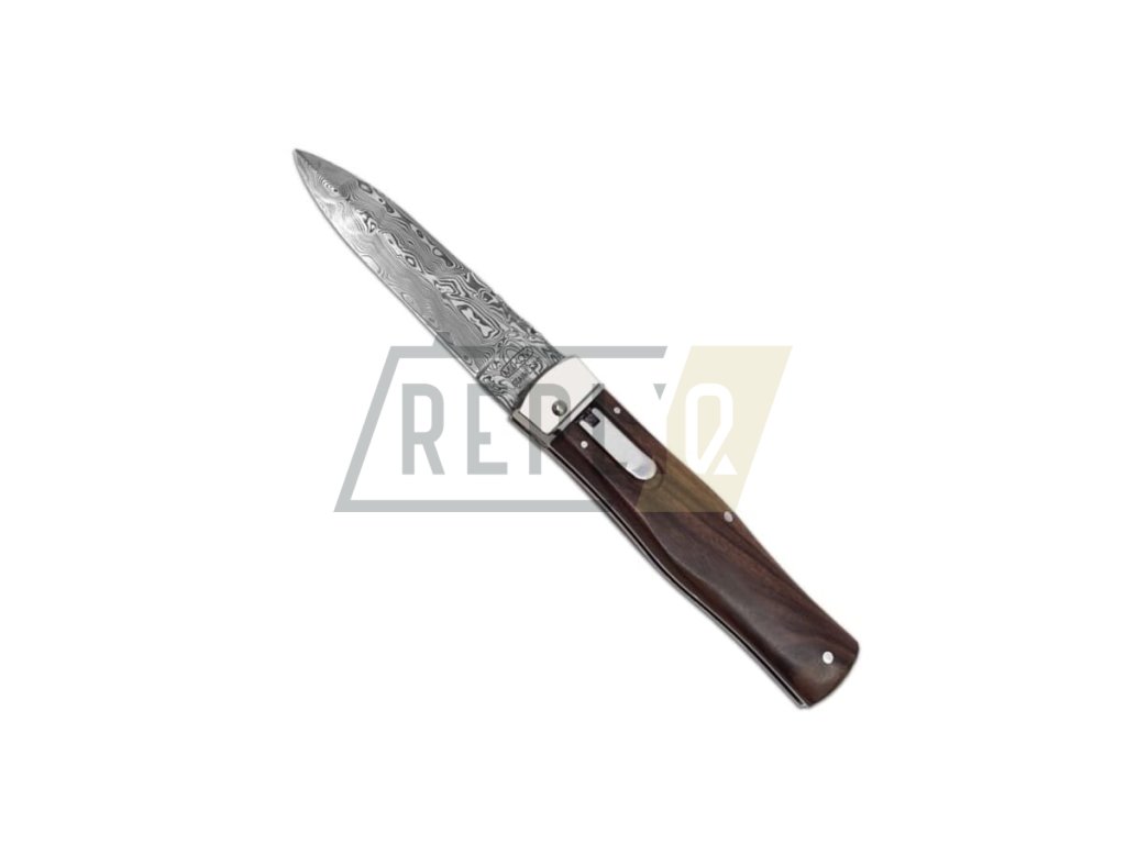 Nůž vyhazovací DAMAŠKOVÁ OCEL střenka PALISANDR nebo TURECKÝ OŘECH + Nůž Mikov Rybička stříbrná 130-NZn-1