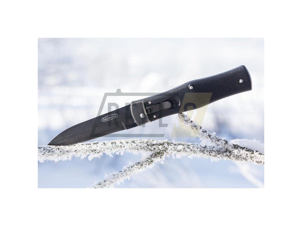 Predator Blackout je prémiový vyhazovací nůž světoznámé české značky MIKOV. Díky své konstrukci je nůž až neuvěřitělně snadné otevřít nůž jednou rukou. Čepel je vyrobena z kvalitní nerezové oceli Böhler N690, která je vysoce ceněná pro své mechanické vlastnosti. Čepel, kování a vyhazovací pera jsou opatřena speciálním DLC povrchem. Střenka je vyrobena z černého ABS plastu a má ergonomický tvar, který padne do téměř jakékoli ruky. K noži je dodáváno kvalitní kožené pouzdro.