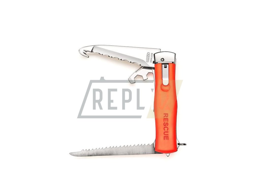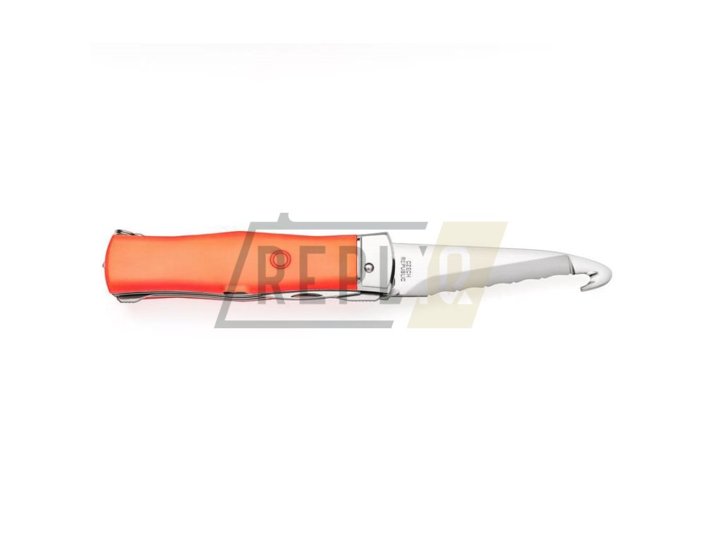 Čepel nože s pilovým ostřím a oblou špičkou je vyrobena z nerezové oceli 420 o tvrdosti 52-55 HRc. Je určena pro řezání bezpečnostních pásů, popruhů, látek, plastových vázacích pásků, kabelů, gumových hadic, konopných a silonových lan atd.. Čepel se otevírá volně pohyblivou páčkou, která umožňuje otevření i v hrubých rukavicích.