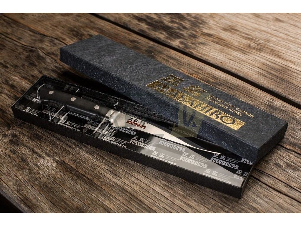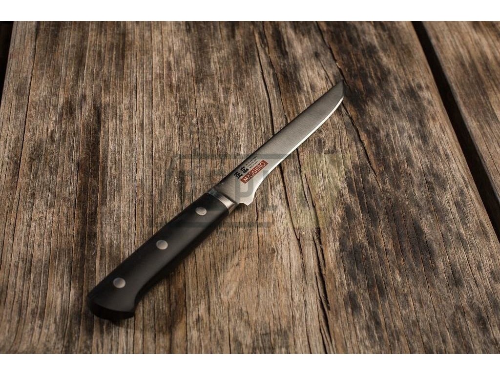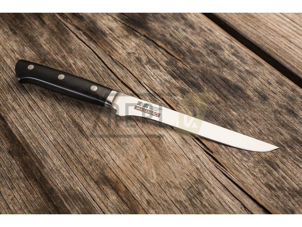 Masahiro MV-H Vykosťovací nůž s délkou čepele 160 mm je nůž určený k rozvolňování s charakteristickou velmi úzkou čepelí se zaoblenou špičkou určenou ke snadnému manévrování kolem kostí, mezi klouby a mezi šlachami a chrupavkami syrového masa. Díky těmto vlastnostem je vykosťovací nůž nezbytnou součástí každé kuchyně, která je cenově výhodnější než nákup rozvolněného masa. Na drůbež a ryby je vhodnější nůž s pružnou čepelí, zatímco na červené maso je lepší nůž s tužší čepelí. V případě potřeby lze k filetování použít nůž na vykosťování, zejména nůž s pružnou čepelí.