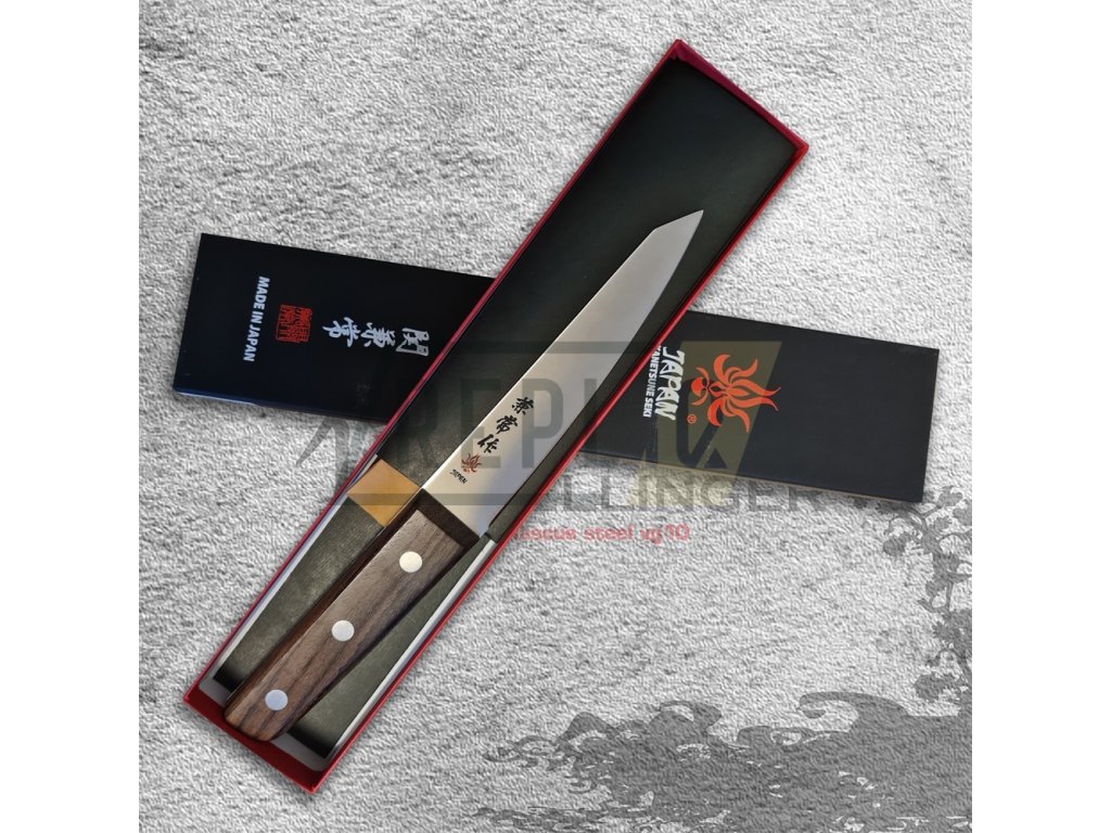 Série nožů od japonského výrobce Kanetsune, která se přímo hodí pro řeznické práce, to je Meat Processing Knife Series. Tento nůž je z japonské oceli SKD-12 a byl vyroben v japonském městě nožů Seki City pro potravinářský průmysl. Jedná se o velmi praktický a skvěle tvarovaný nůž vyrobený z kvalitních materiálů. Ocel použitá v těchto nožích je kalena na tvrdost 60-61 HRC a má vynikající houževnatost a životnost ostří. Tvar Honesuki-Maru, to je tzv. podivín mezi noži. Stačí se podívat a hned poznáte, že je prostě odlišný. Jeho profil je zvláštní, připomíná prohnutý luk. Ostří začíná plynulým přechodem se střenkou v jednotné geometrii. Je navržen tak, aby jej bylo možné držet „shora“ což je způsob držení nože při zpracování visícího masa – zpracování ve visu. V nouzi ho lze také uchopit jako běžný vykosťovací nůž a použít pro méně specifické práce.
