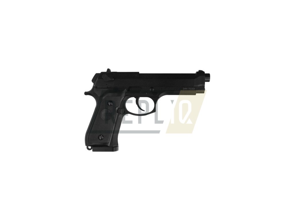 Povedená replika léty prověřené italské pistole Beretta 92 ve vzduchovkovém provedení na olověné diaboky i ocelové BB broky 4,5mm a systémem BlowBack.Princip systému CO2 zbraně: Bombička s CO2 se vloží do zbraně. Po mechanickém zajištění šroubem se narazí na trn ventilu. Stiskem spouště úderník otevře ventil a pustí dávku plynu CO2 z bombičky. Takto vytvořený tlak následně vyžene střelivo z hlavně ven.
