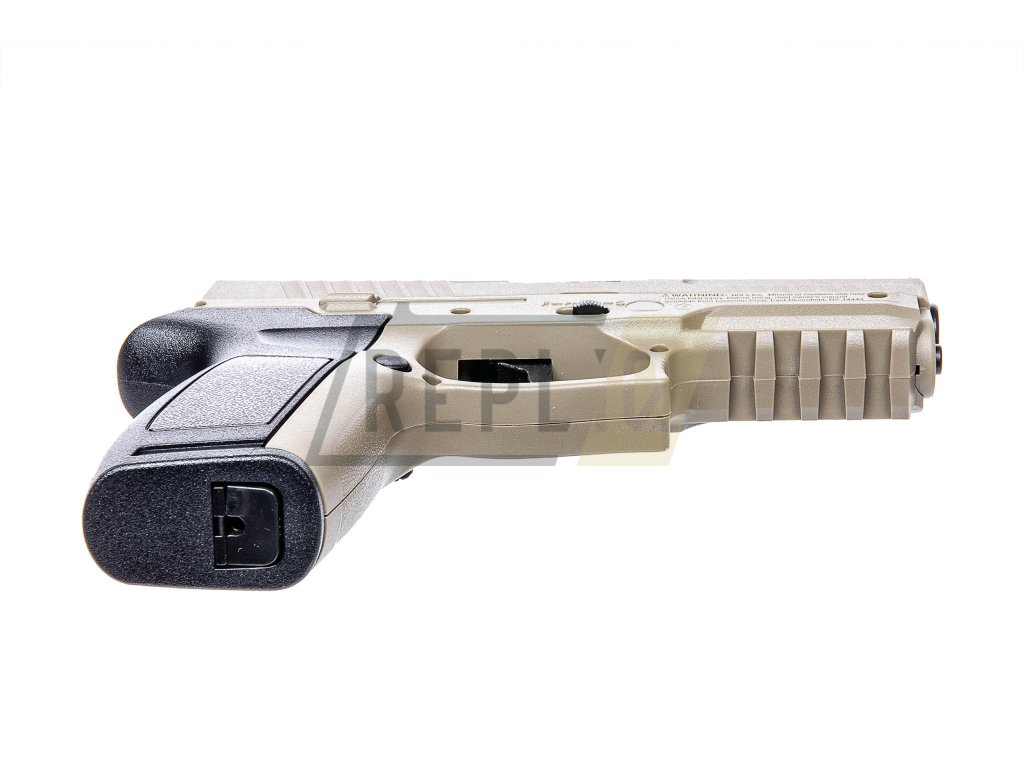Pistol je poháněna 12g CO2 bombičkou, jejíž umístění je uvnitř pažbičky. Vevnitř také najdeme zásobník s kapacitou 20 ocelových BB broků. Jedna bombička přitom vystačí přibližně na 5 kompletních zásobníků. Její výdrž může záviset především na okolní teplotě apod.