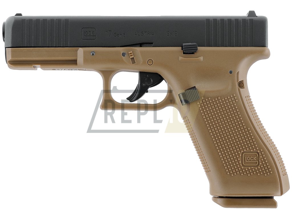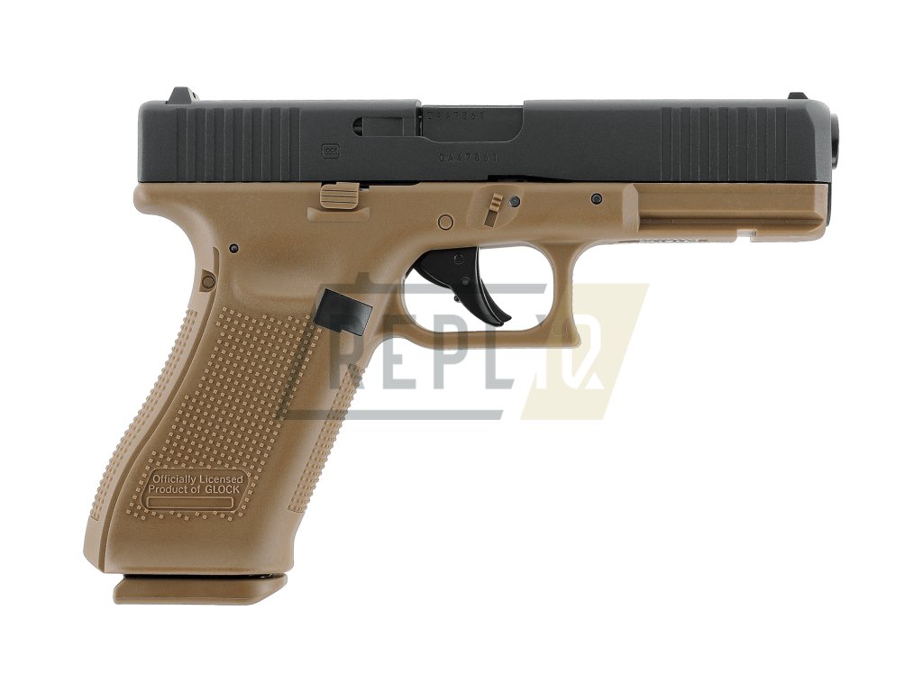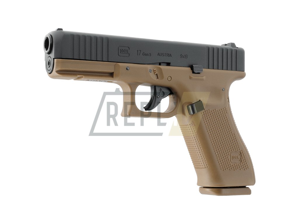 Vzduchová pistole Glock 17 Gen5 BlowBack CoyoteAutentická replika snad nejznámější rakouské značky Glock. Umarex získal licenci k výrobě přesných replik.