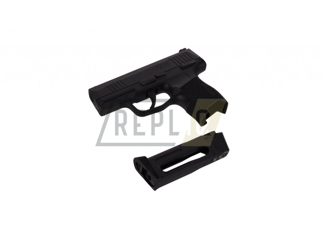 Sig Sauer subcompact P365 má rám po vzoru ostré zbraně, je zhotoven z odolného polymeru a nese kovový závěr. Zdrsněný povrch střenek zaručuje jistý úchop v každé situaci. Zvýrazněná mířidla jsou dobře čitelná i ve zhoršených světelných podmínkách. Manuální pojistka je oboustranná, záchyt závěru se však nachází pouze na levé straně. 12 gramová CO2 bombička se vkládá do kovového zásobníku, vystřelí přibližně 50 ran. Úsťová rychlost se vzhledem ke krátké hlavni pohybuje okolo 90 m/s. BlowBack systém zaručuje realističnost střelby.